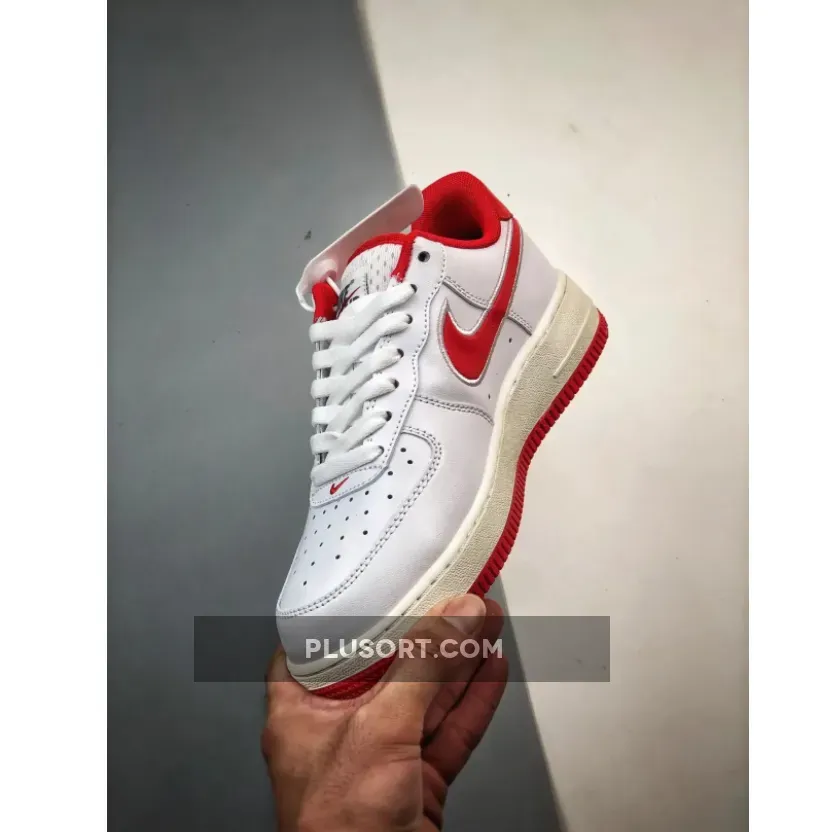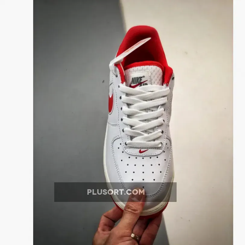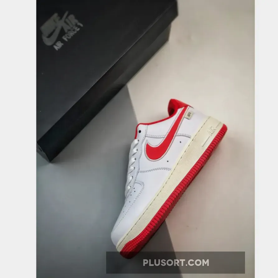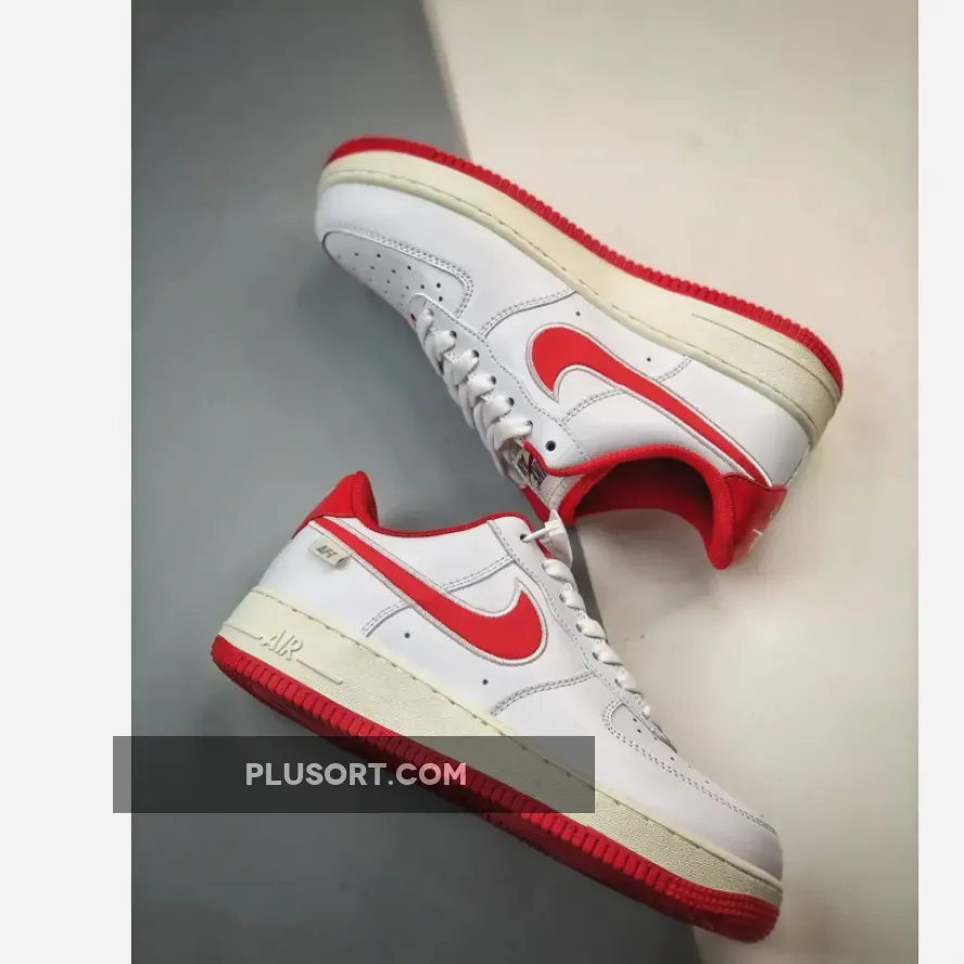 Solid AF1 design with a timeless white leather base and bold red accents. Oversized Swoosh with embroidered outlines adds a touch of sophistication. Perfect blend of classic heritage and modern vibes. #NikeAF1 #SneakerGoals #RetroVibes