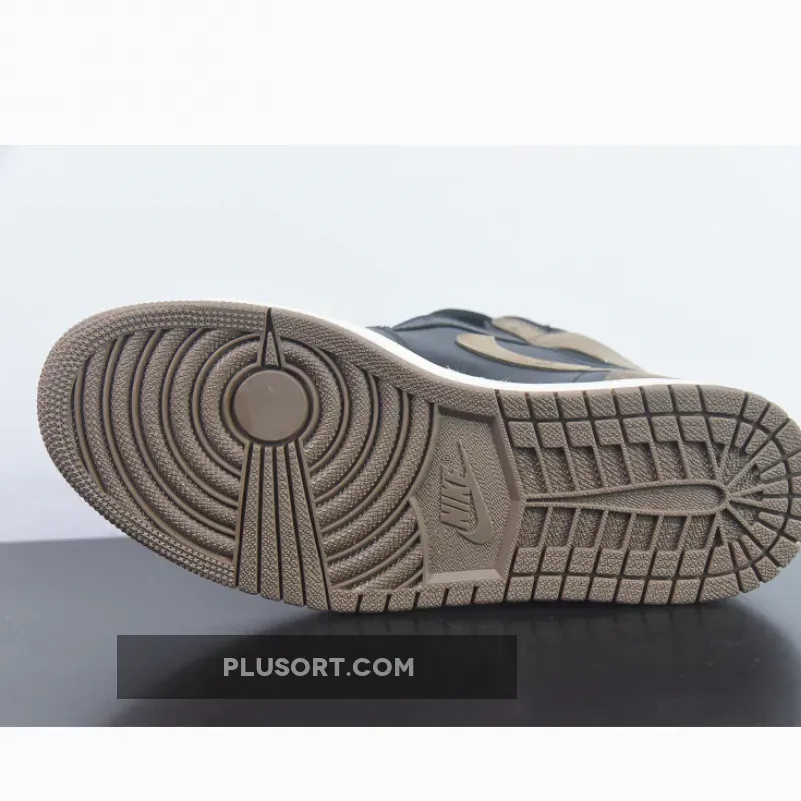 Underfoot, a lighter story takes place as the Jordan 1 tread is dressed in brown, with a sail colour wrapped around the midsole to balance the darker tones of the upper.