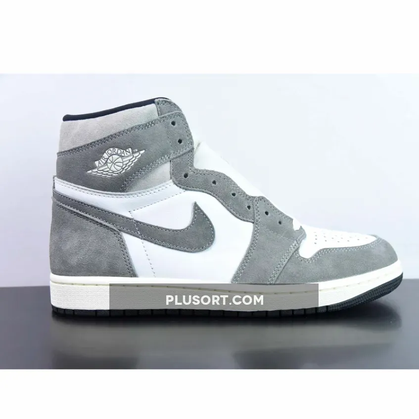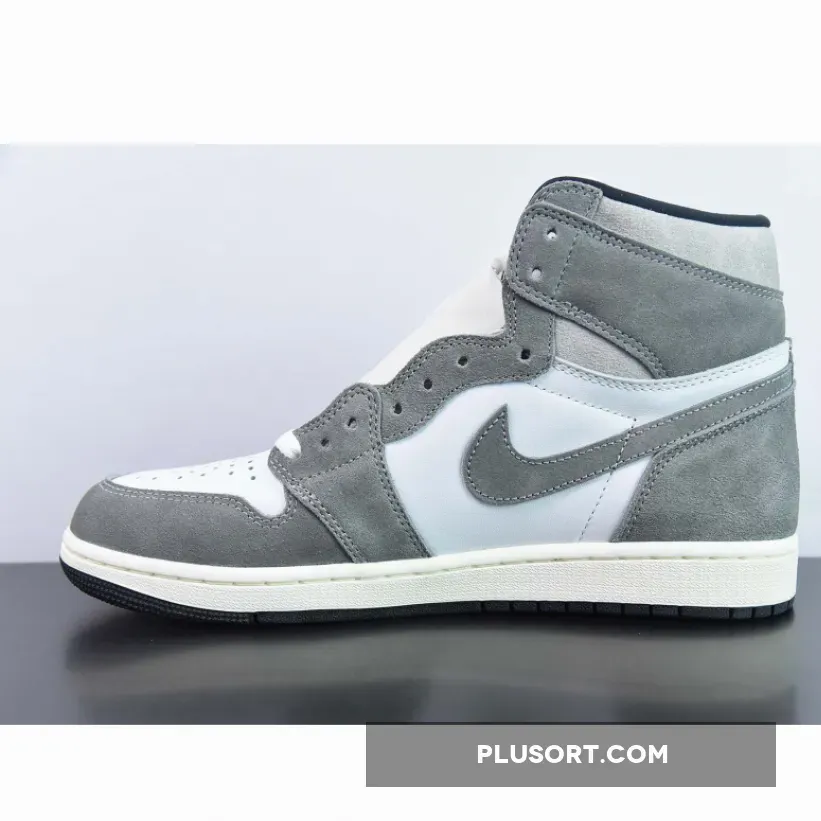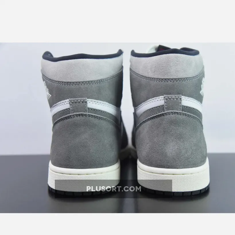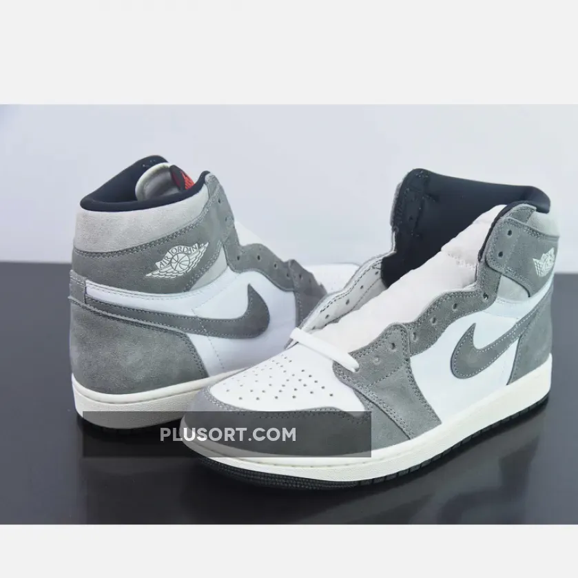 This Air Jordan 1 features a Black, Fire Red, Light Smoke Grey, and Sail color combination. Going over the shoes, they feature White leather on the base while Black washed suede, which looks Grey, adorns the overlays with a classic white Nike Swoosh adding a touch of contrast.