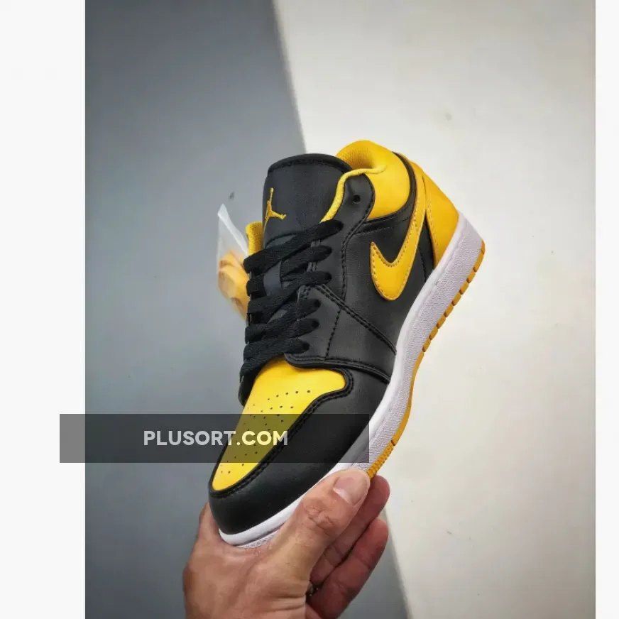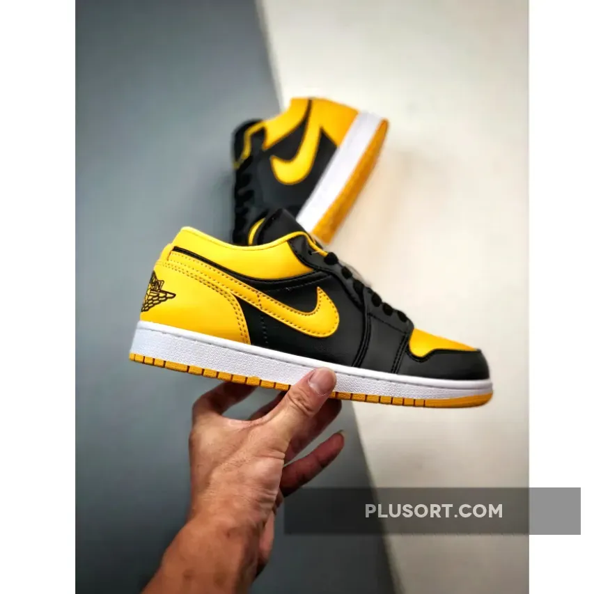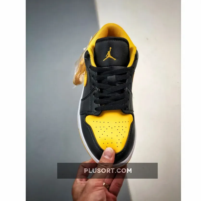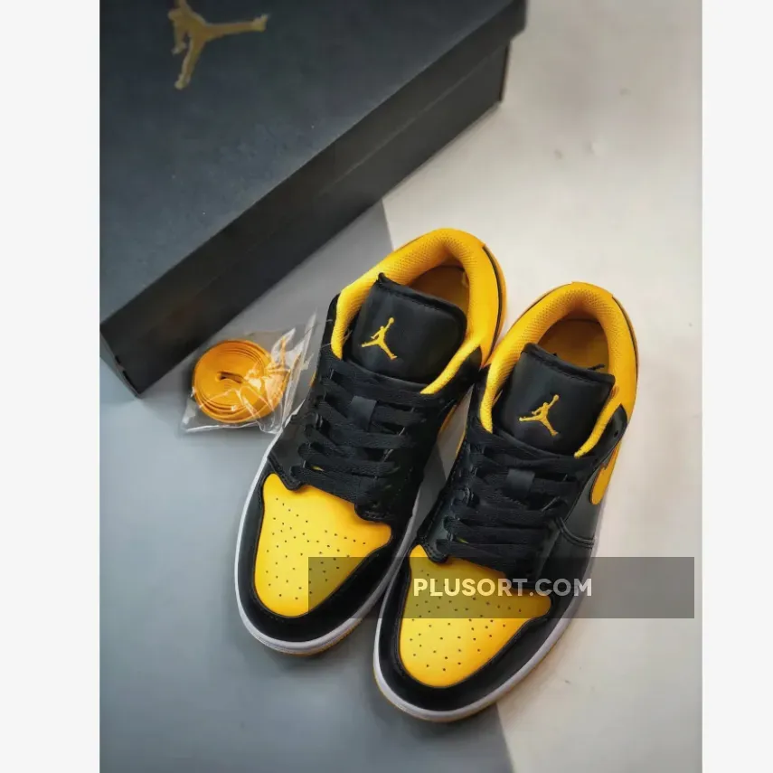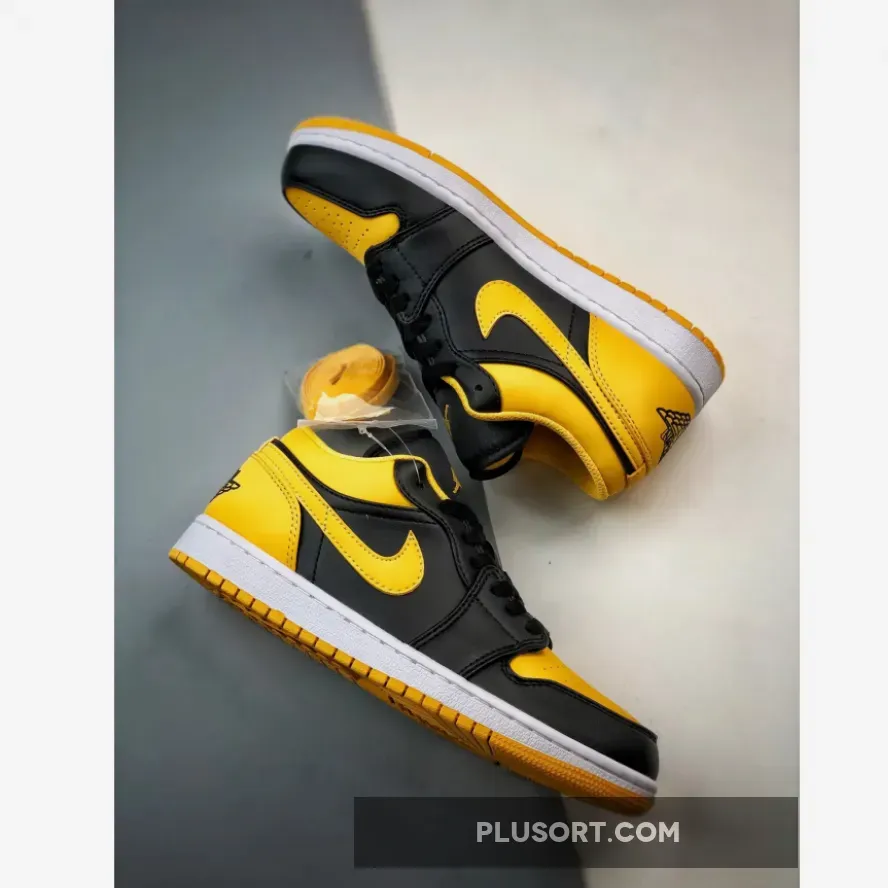 The Air Jordan 1 Low “Yellow Ochre” features a fairly familiar look with its smooth leather upper construction. Dressed in black on the base panels, the titular hue takes its spot throughout the toe box, Swoosh profiles, heels and interior linings.