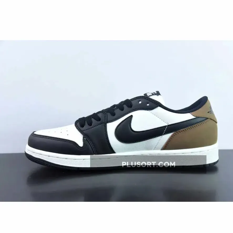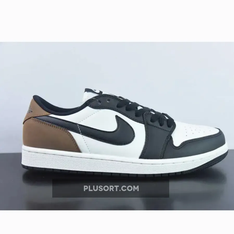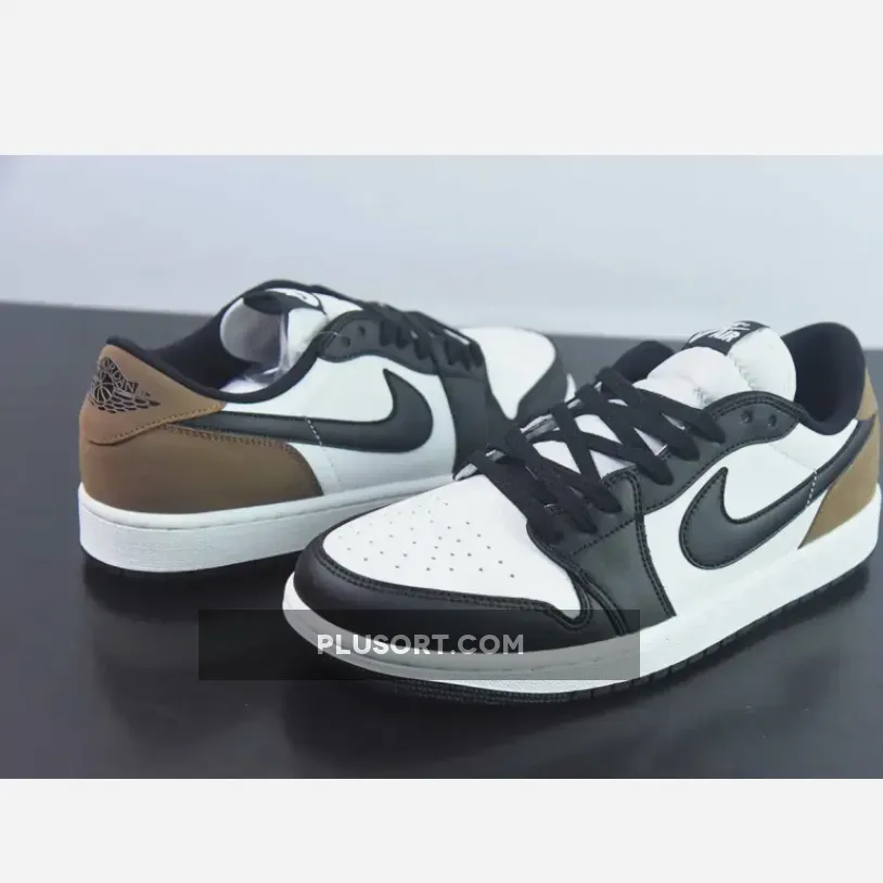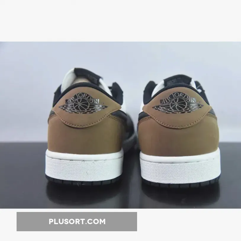 With its White, Black, and Palomino colorway and a design reminiscent of the 2020 “Mocha” Air Jordan 1 High OG, this low-top shoe offers a fresh look with its distinctive accents and branding.