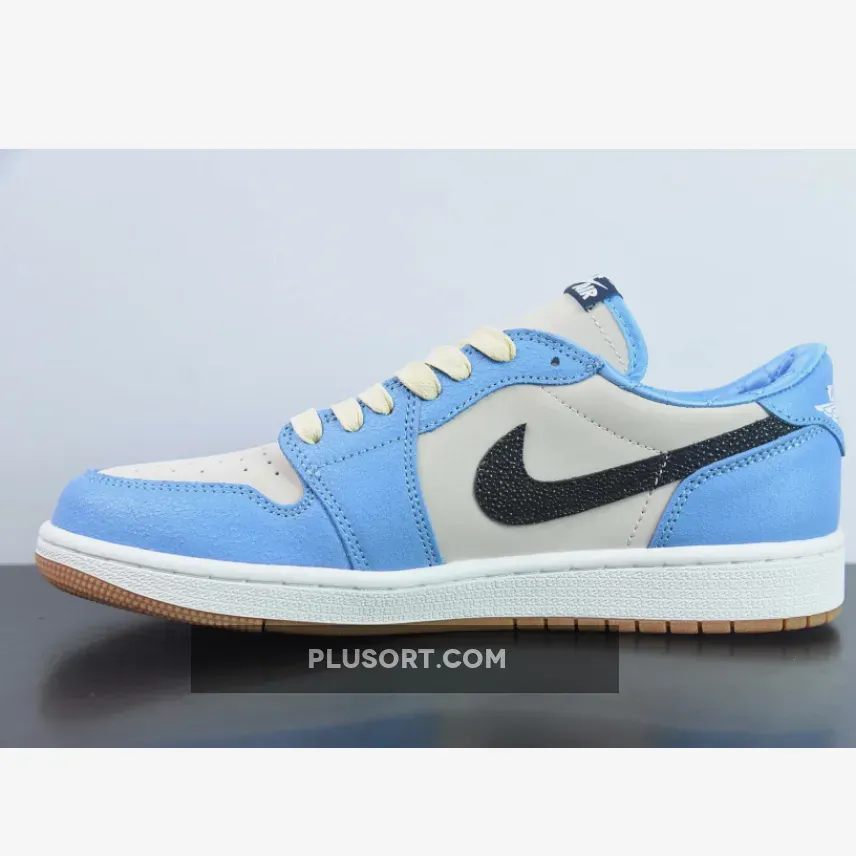 This offering sees the pair of Air Jordan 1 Lows constructed in a white premium suede base, while the overlays are in cracked “University Blue” suede. Safari-like textured Swooshes in navy highlight the lateral, while other additional details include the mini-Swoosh on the lateral forefoot. The inner lining features a luxurious quilted satin liner in an argyle design, stamped with the UNC logo on the insoles. The shoe sits atop a sail midsole and light gum rubber outsole to round out the design.