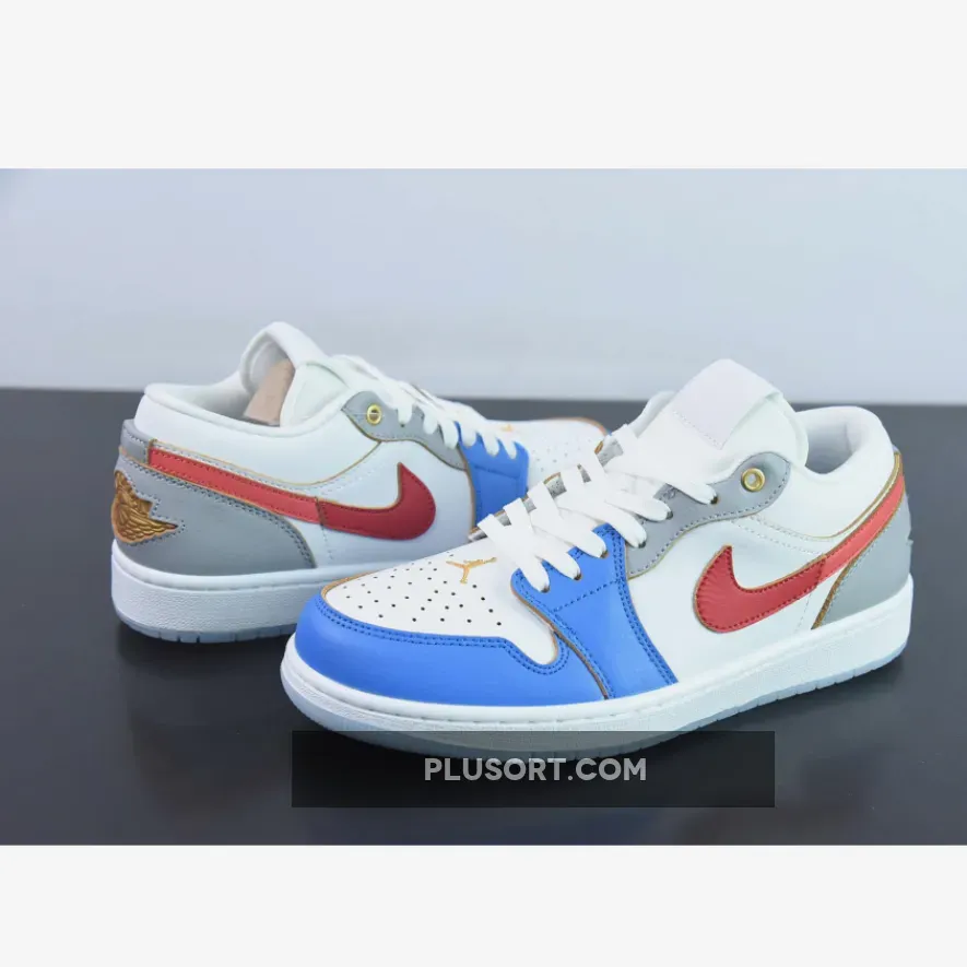 As a heartfelt tribute to the nation’s flag, the Air Jordan 1 Low “Philippines” uses the country’s national colors to create a unique sneakers. This Pair comes constructed using two different types of leather, smooth takes care of the base and a tumbled leather is spotted on the overlays.