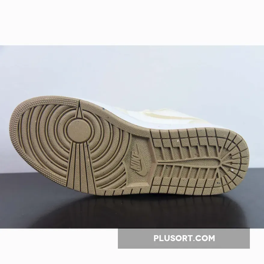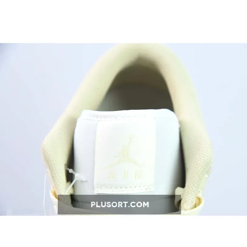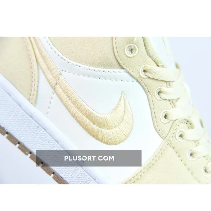 This Air Jordan 1 Los starts off with a cream-like hue on the leather base on the upper while the highlight tan/linen canvas takes care of the overlays, resemblance to the recently-unveiled “Celestial Gold” colorway.