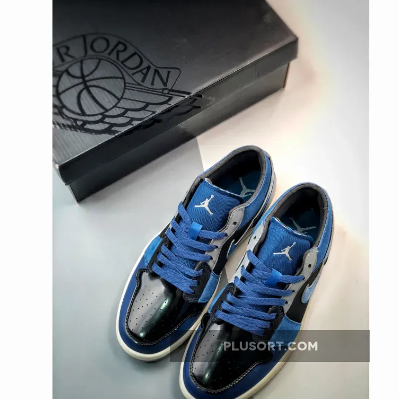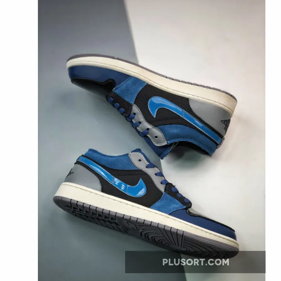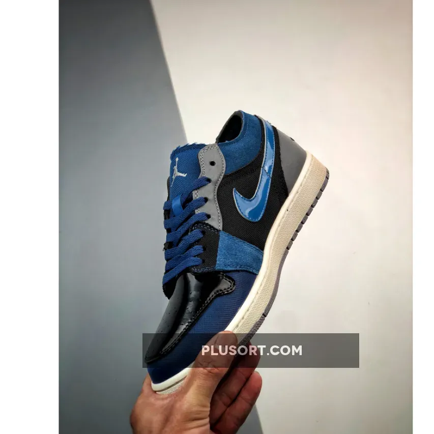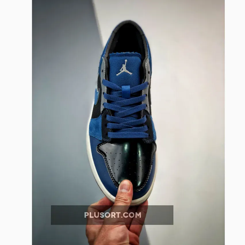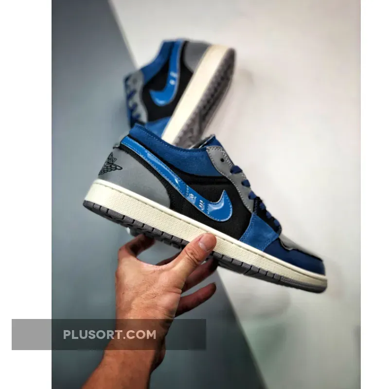The classic Peter Moore-designed Air Jordan 1 silhouette gets a glossy blue Craft update. Introducing the Air Jordan 1 Low Craft Navy. This low-cut AJ1’s Craft DIY aesthetic mixes up multiple materials on the upper. Shiny patent leather in deep navy Obsidian stands out on the toe box. The same material is used again on the signature profile Swooshes on both the medial and lateral sides of the shoe but, this time, in a lighter shade of French Blue. The other panels on the upper are a mix of suede, mesh and leather in Obsidian, Ashen Slate and French Blue. An embroidered Ashen Slate Jumpman adorns the tongue while an embroidered Obsidian Wings logo can be found on the heel panel.