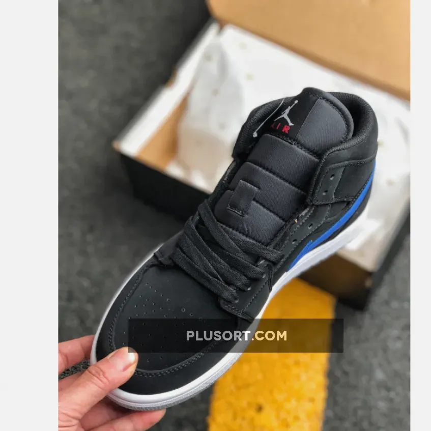 An on-court sensation since its debut in 1985, the Air Jordan 1 Mid takes inspiration from the original Air Jordan 1. This mid-top rendition adds luxe texture and a bold sensibility to the timeless design. It features an all-black suede and synthetic upper that’s punctuated with classic detailing along the quarter panel. The lateral side shows off a Universal Red Swoosh, while the medial side showcases a Hyper Royal Swoosh. An Air Jordan Wings and Jumpman logo round out this stylish design.