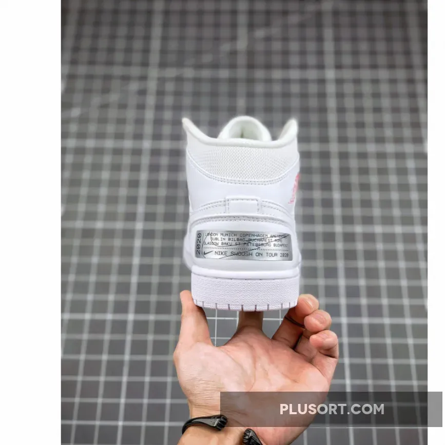 Premium white leather & mesh blend offers style & comfort. Air Jordan 1 Mid “Euro Tour” looks sleek & offers responsive cushioning. #AJ1 #Sneakers #EuroTour