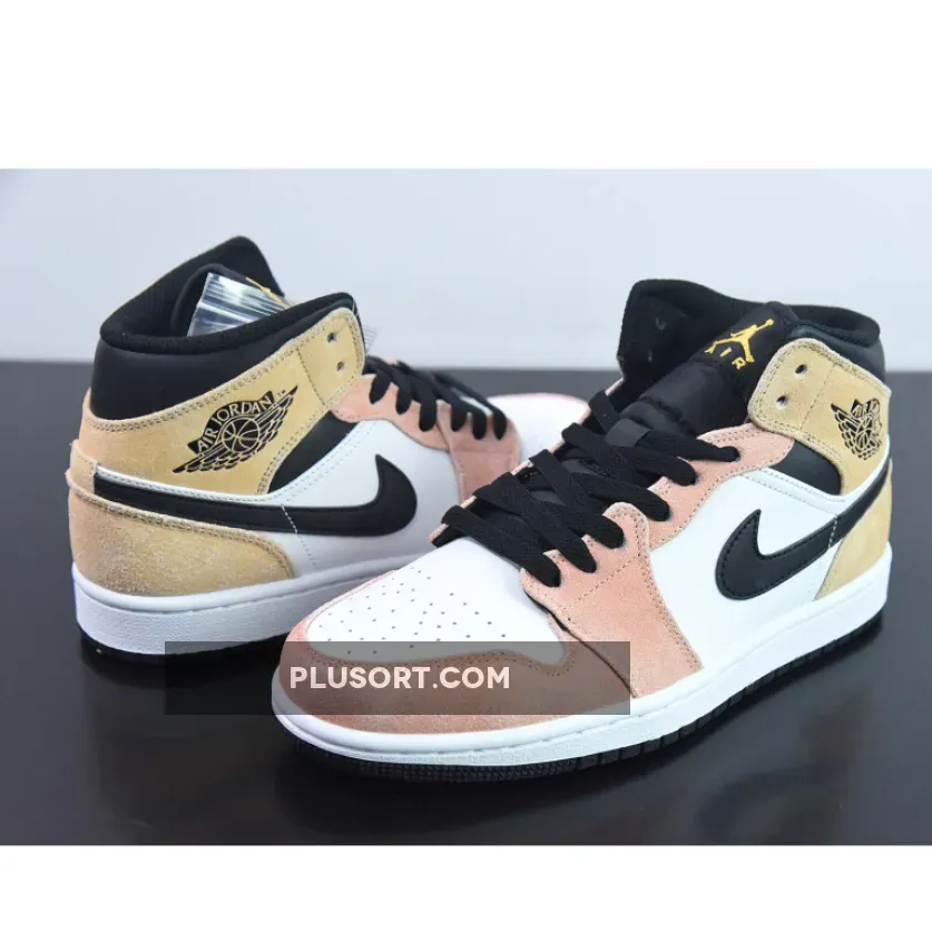 the pair possesses a dusk-like graduation from orange suedes at the toe to golden tints in the rear. It’s met in the middle — and at the toe — by bright white leathers, with bold blacks in support at the collar, Swoosh overlays, liners, laces, and tongue. The embroidered Jumpman logos on the tongues are Gold while the Wings logos on the lateral collar flaps are stamped in black. A white midsole and a black rubber outsole wrap up the look of this sneaker.