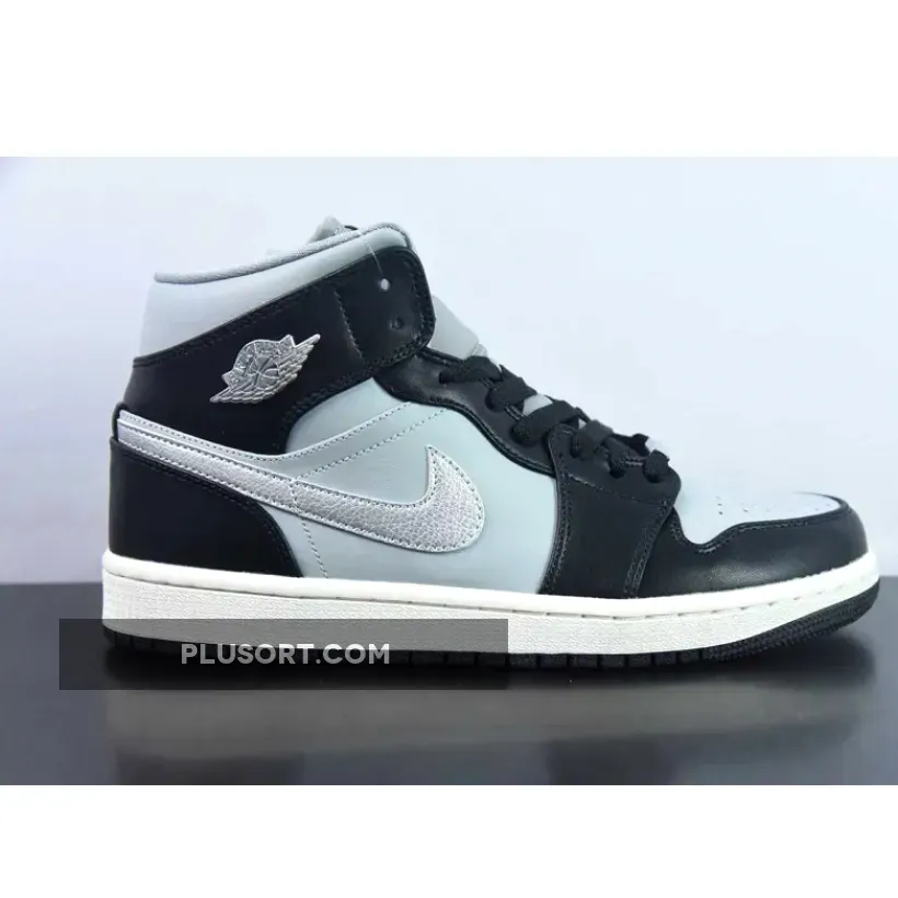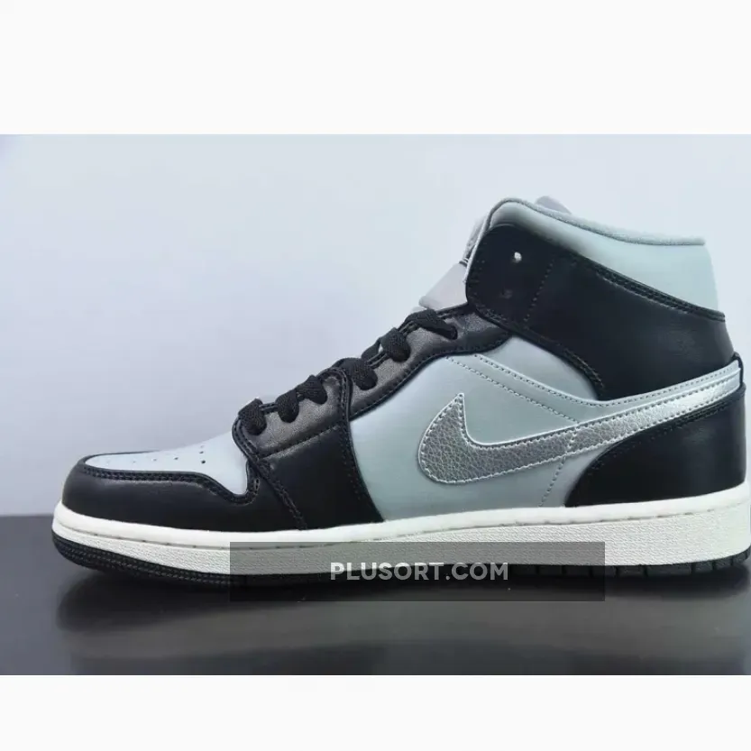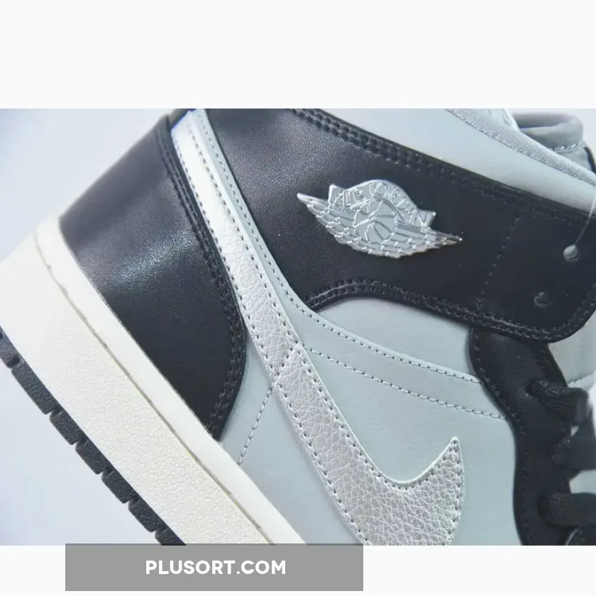 The shoe showcases a sleek ensemble of colors, including Black, Metallic Silver, Light Smoke Grey, and Sail. Crafted with luxe full-grain leathers and mesh lining, the AJ1 Mid SE “Black Chrome” provides both comfort and durability. The Light Smoke Grey leather upper creates a stylish tonal backdrop, while the striking Black leather overlays add glossy contrast with a patina-like finish. Notable additions include the Chrome Wings on the lateral ankle and lace dubrae, adding a touch of hardware-inspired flair. The vintage charm is further enhanced by the Sail midsole, complemented by a Black rubber outsole that completes the design.