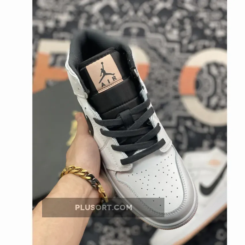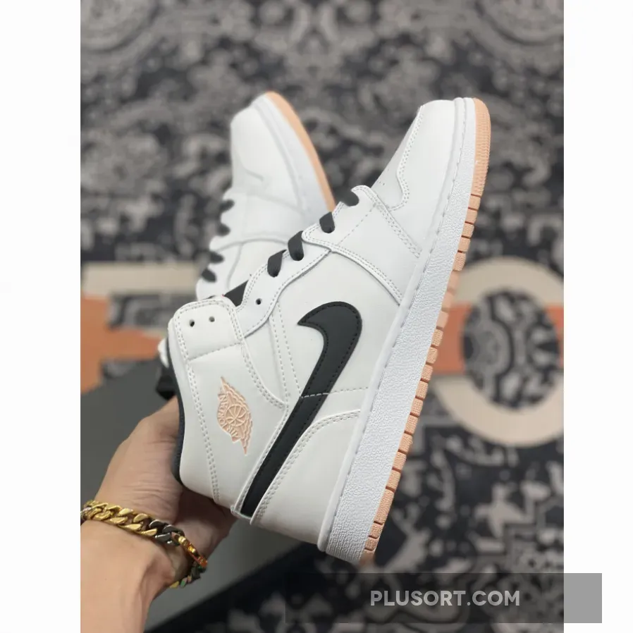 Dressed in a White, Anthracites, and Arctic Orange color scheme. This mid-top Air Jordan 1 features a White leather upper with Anthracite Swooshes, tongues, laces, and lining.