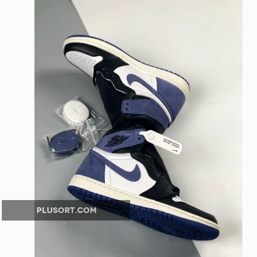 One of those comes dressed in Summit White, Blue Moon, and Black. This Air Jordan 1 has a similar style as the “Black Toe” Air Jordan 1 replacing the Red with Blue Moon.