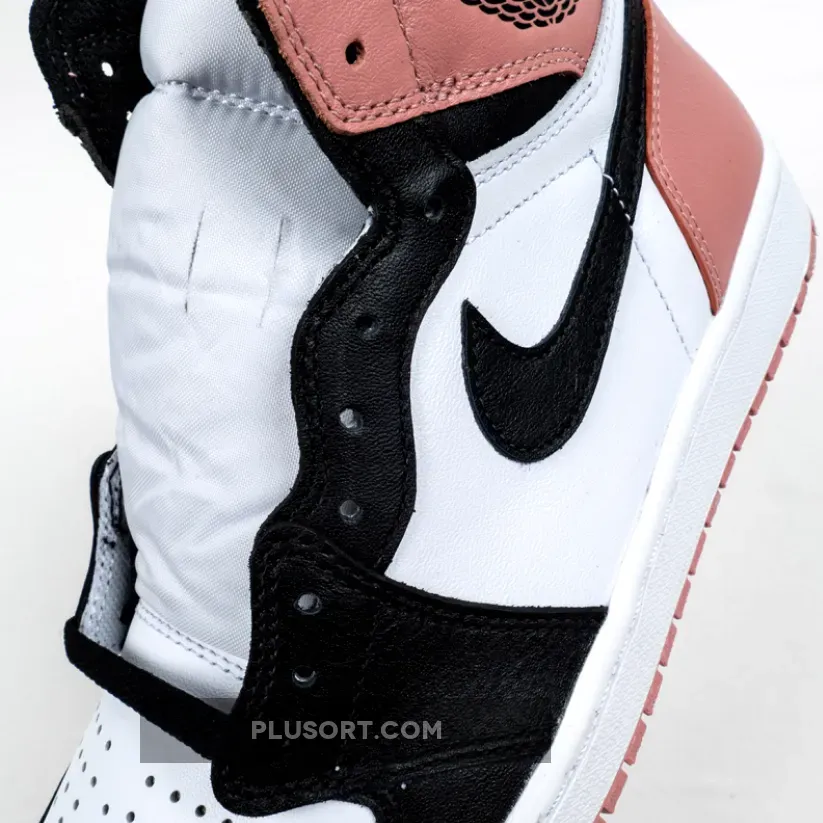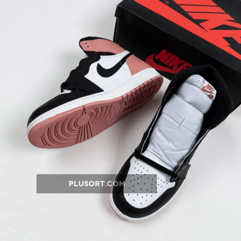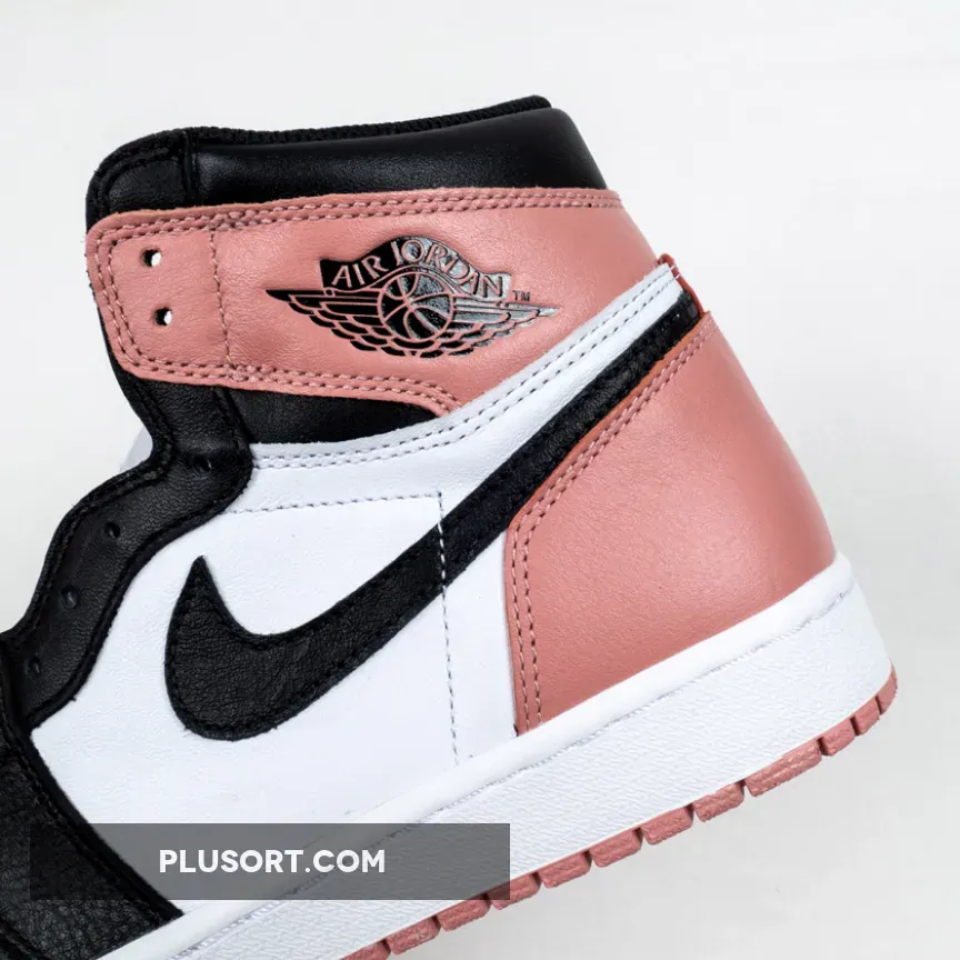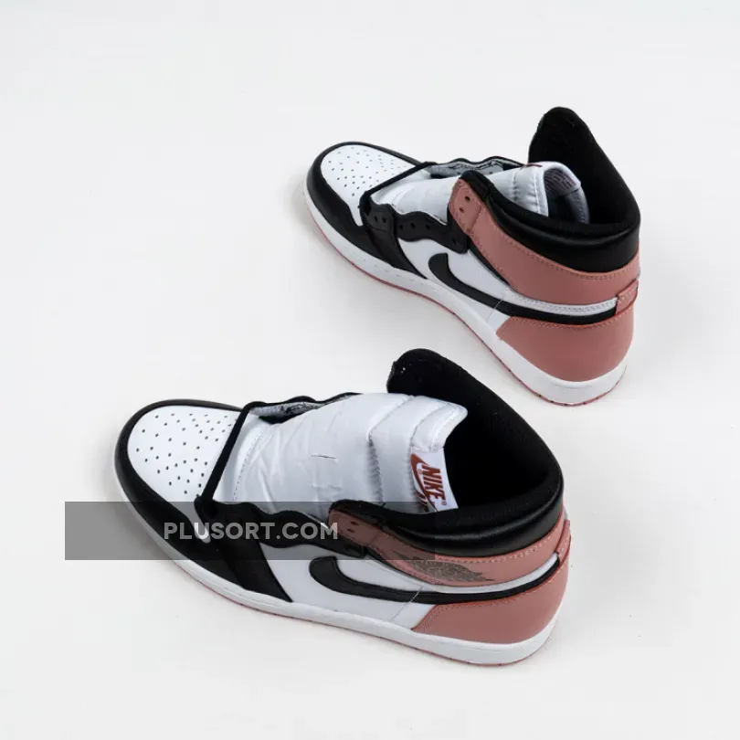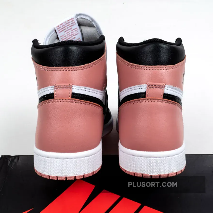 Dressed in a White, Rust Pink, and Black color scheme. This Air Jordan 1 has a similar theme as the “Black Toe” Air Jordan 1. It replaces the Red areas with Rust Pink, while the other portions of the shoe remain in White and Black.