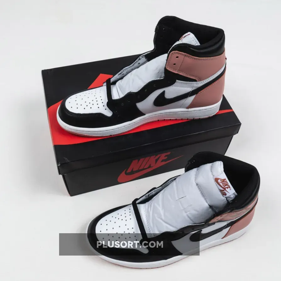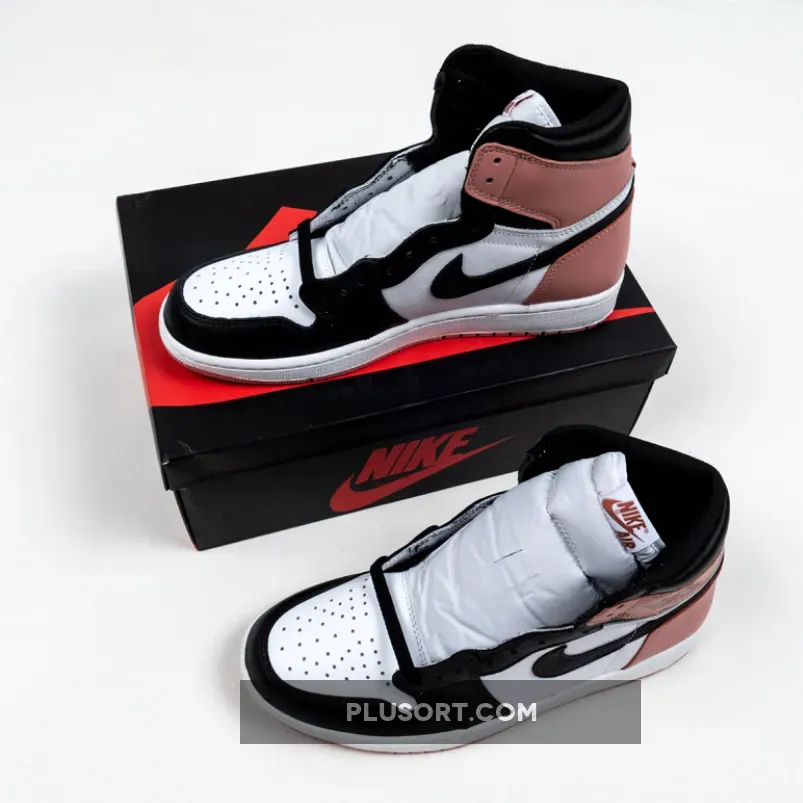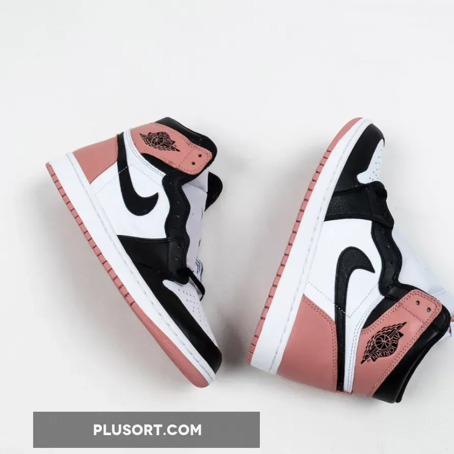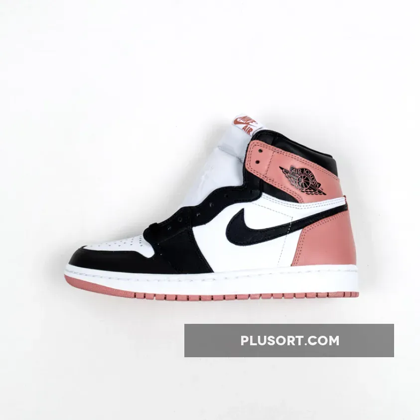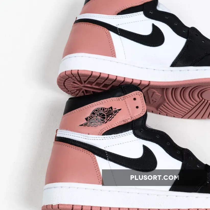 Dressed in a White, Rust Pink, and Black color scheme. This Air Jordan 1 has a similar theme as the “Black Toe” Air Jordan 1. It replaces the Red areas with Rust Pink, while the other portions of the shoe remain in White and Black.