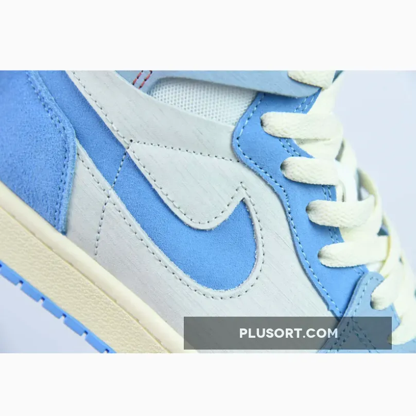 Leather is scarce on the comfort-oriented modification of the first Air Jordan, with suede and mesh taking over everything from the overlays around the toe to the underlays around the collar area. A powdery blue seeps into the forefoot overlays as well as the collar flaps, the latter of which hosts angelic ball-and-wings logos. The rest of the upper is formed with light bone suede and mesh collars while the laces are colored up in a “Sail” hue.