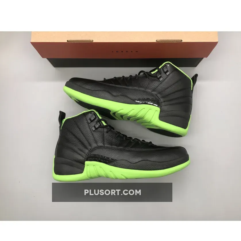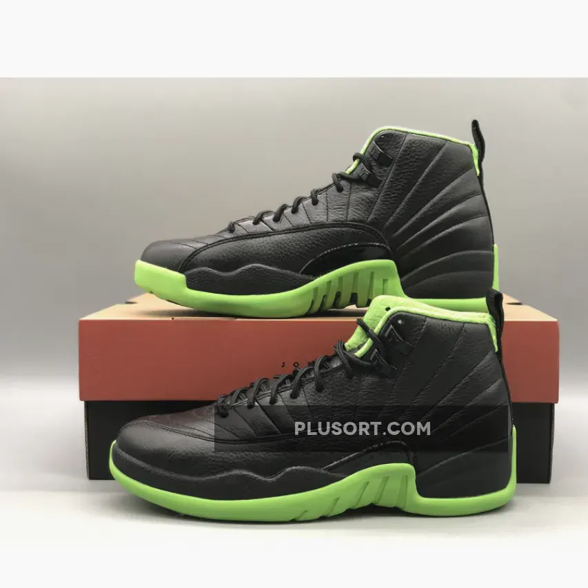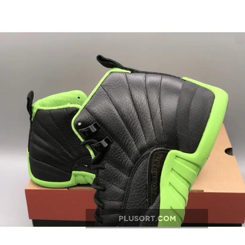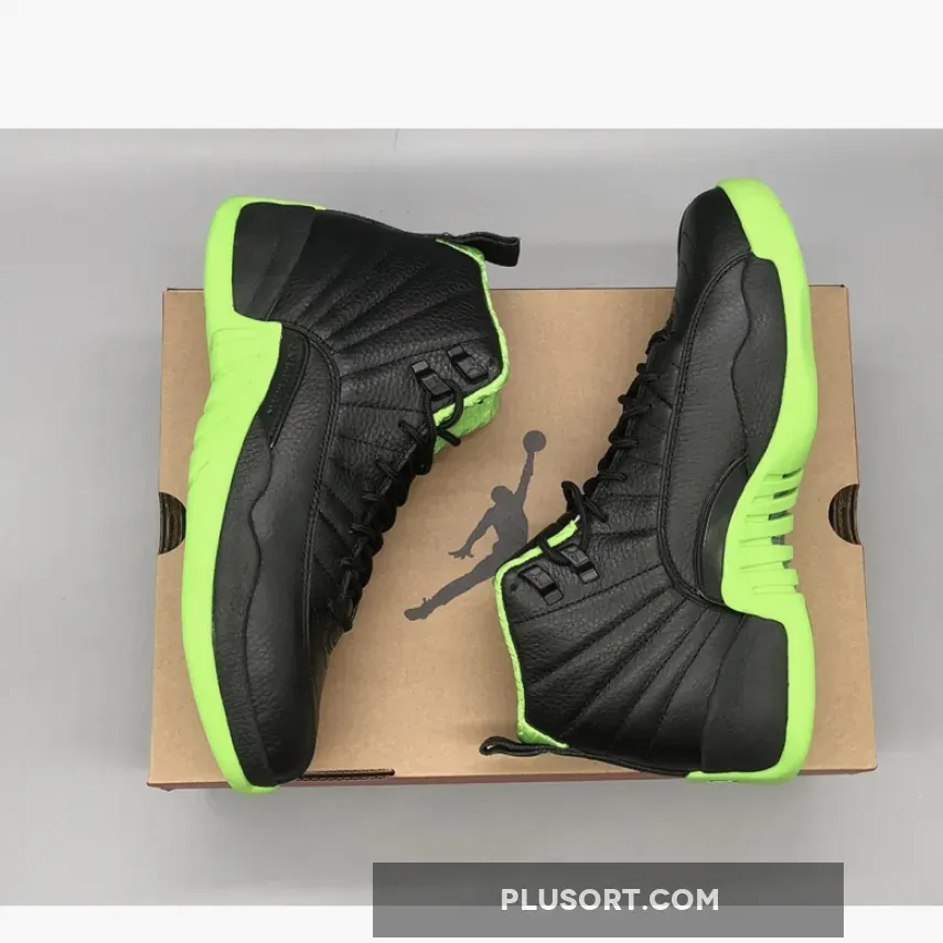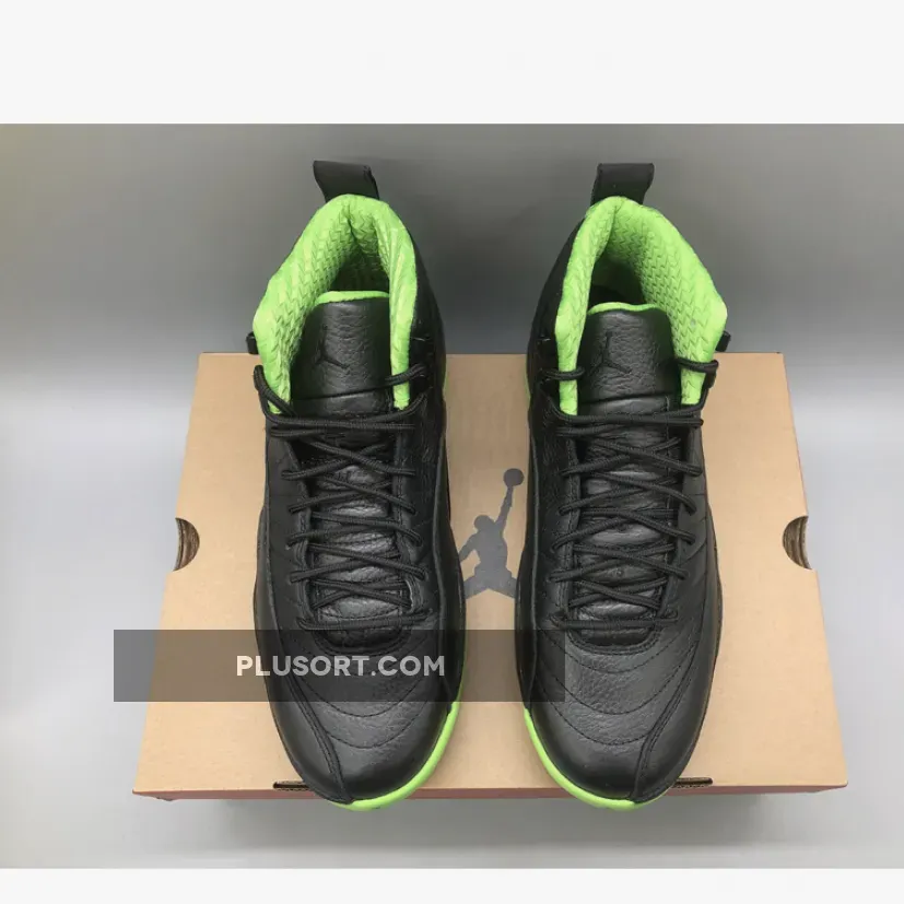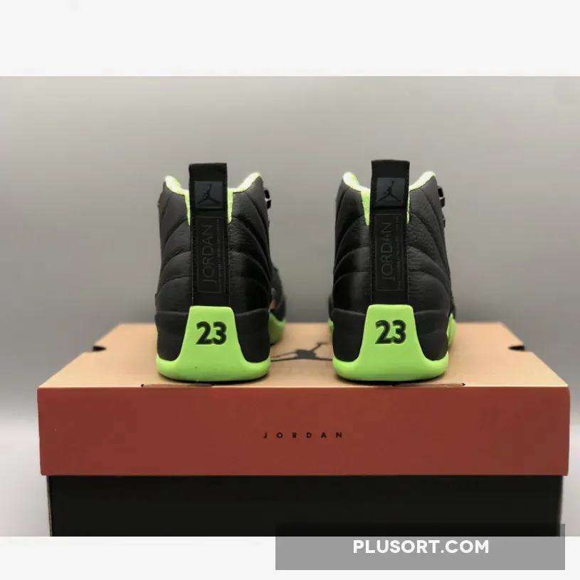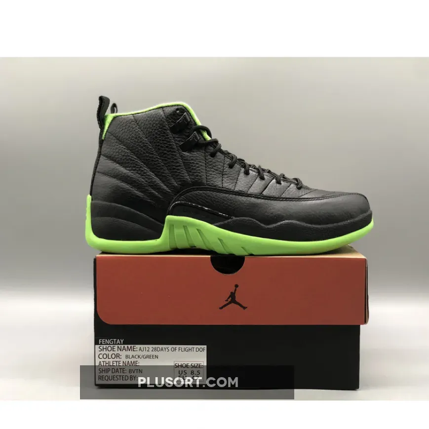 black neon jordans #jordan 12 28 days of flight #jordan 12 black and green