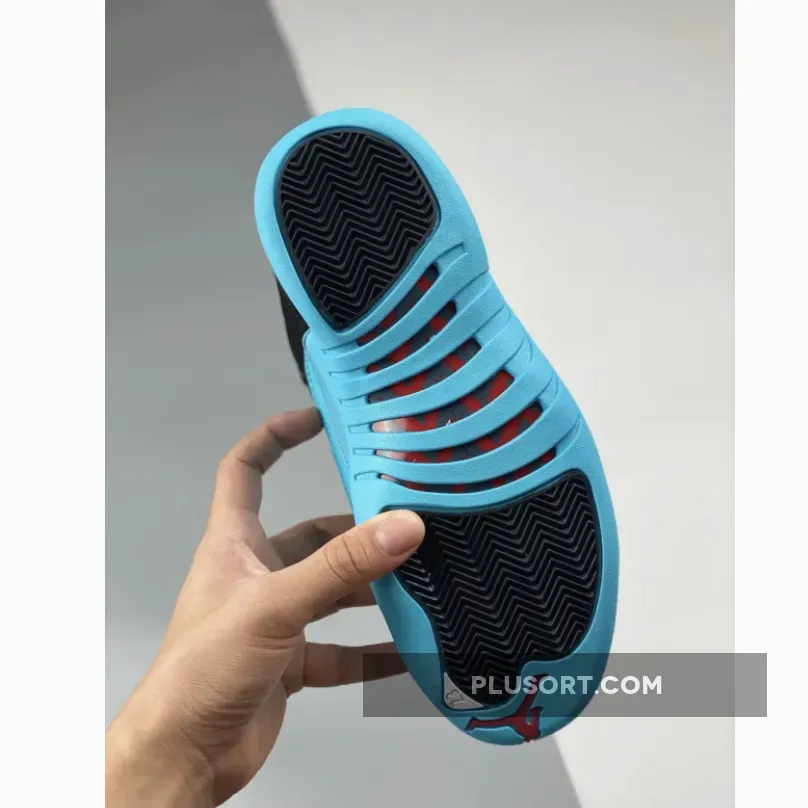 Dressed in a Black, Gym Red, and Gamma Blue color scheme. This offering of the Air Jordan 12 features a Black nubuck upper paired with Gym Red heel tabs and Jumpman logos. Gamma Blue highlights the shoe on the overlays and rubber sole.