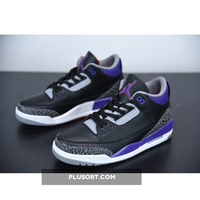 Air Jordan 3 ‘Court Purple’ ? Loving the black/cement base with purple accents and elephant print overlays! Quality leather, comfy fit. Perfect for daily rotation. #MustHave ? #Nike #AirJordan3 ?