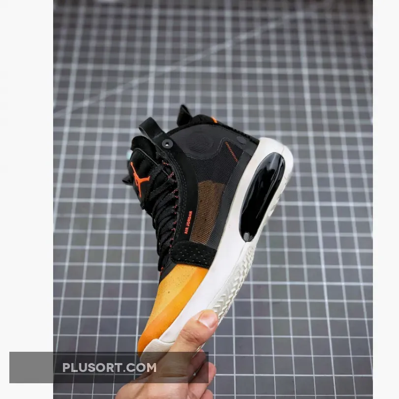 The Air Jordan 34 ‘Amber Rise’ offers a sleek design with vibrant accents. The TPE layering and Eclipse Plate provide support and comfort. The color scheme is captivating, blending black, orange, and metallic silver seamlessly. Overall, a well-crafted shoe for basketball enthusiasts seeking style and performance. #AirJordan34 #AmberRise #BasketballShoes