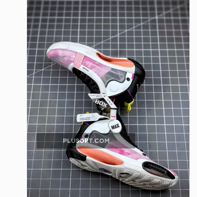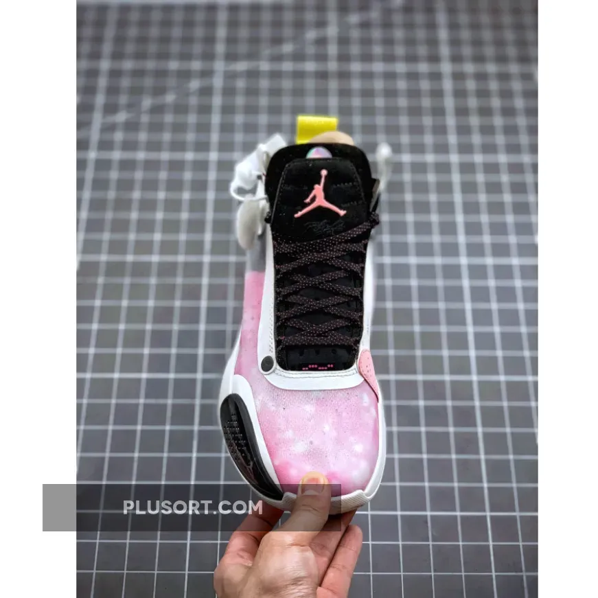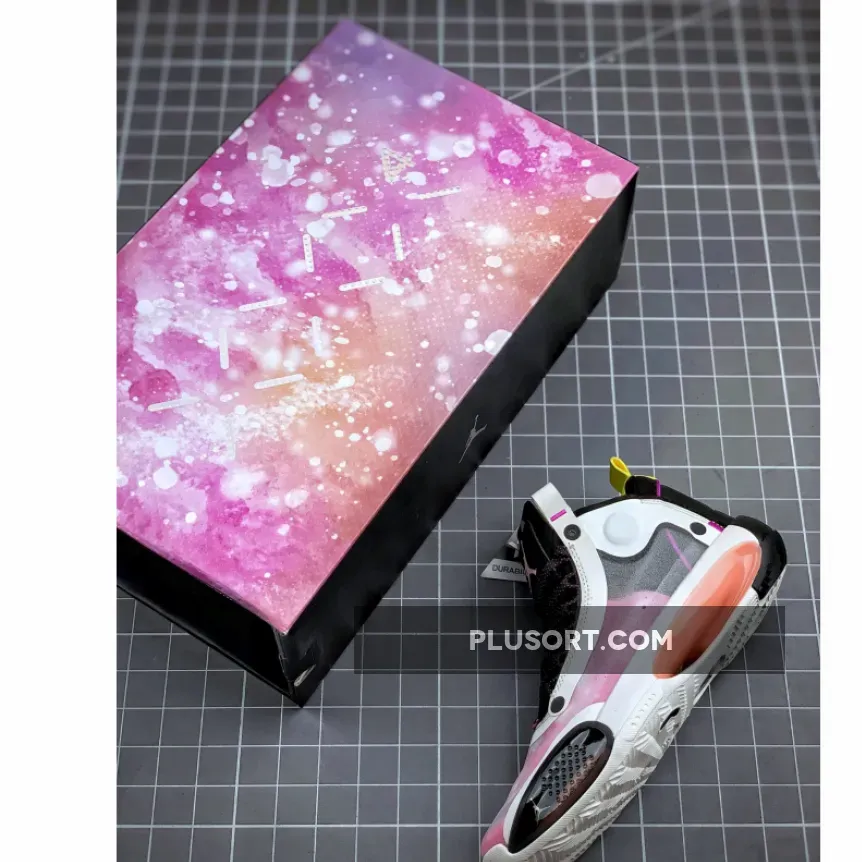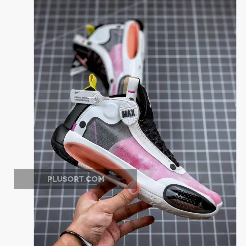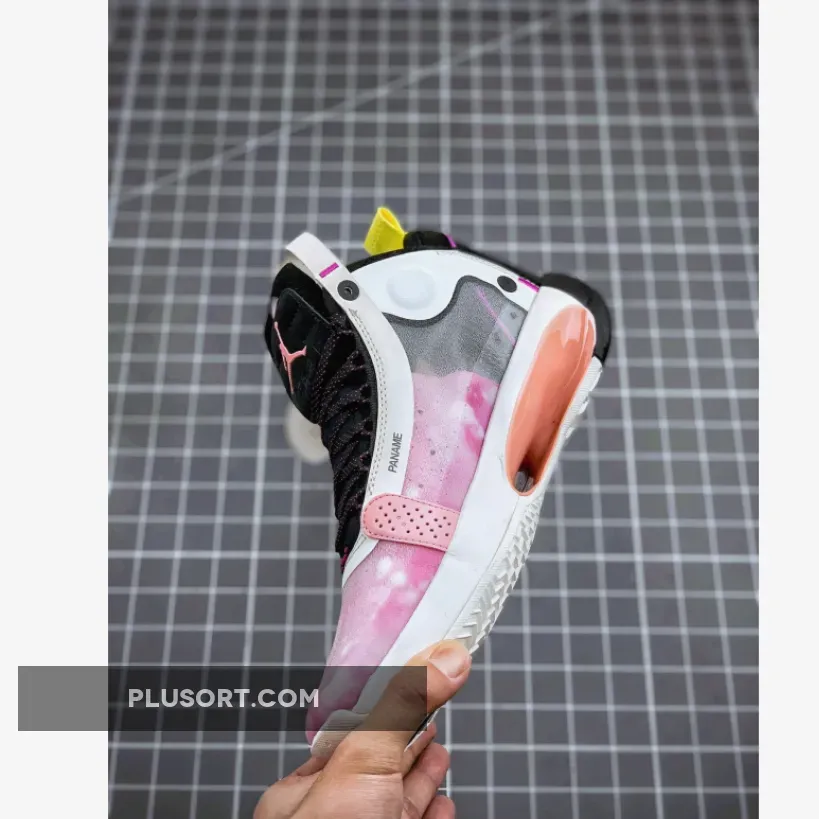 this Air Jordan 34 comes highlighted with a soft Pink and Purple which starts at the toe while Black is seen towards the heel in a gradient fashion. Black is also used on the tongue and heel while ‘Paname’ is seen on the upper part of the panel. In addition we have a large iridescent Jumpman and ’75’ which is the city’s area code on the heels. Some of the other details includes Yellow pull tabs, Jumpman branding on the tongue while a numbered label on the inside of the tongue finishes the look.