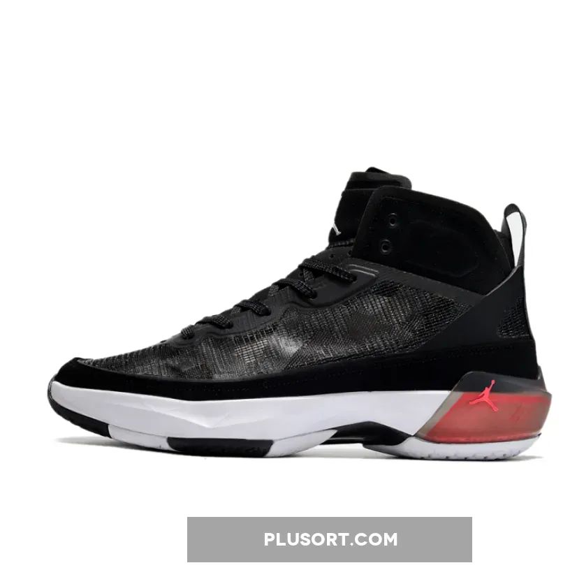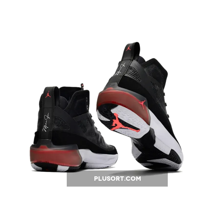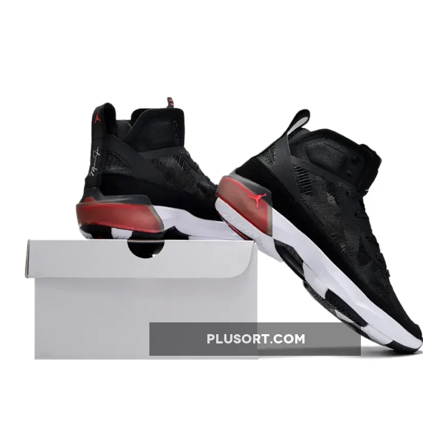 Dressed in a Black, White, and Hot Punch color scheme. The Air Jordan 37 features a Lenoweave upper inspired by the Air Jordan 7 and comes constructed from West African basket weaving techniques. Other details includes dynamic Formula 23 foam midsole paired with a carbon fiber plate at the midfoot and a Zoom Air unit at the forefoot.