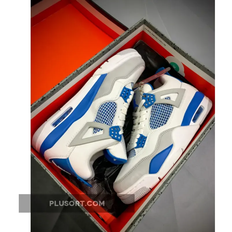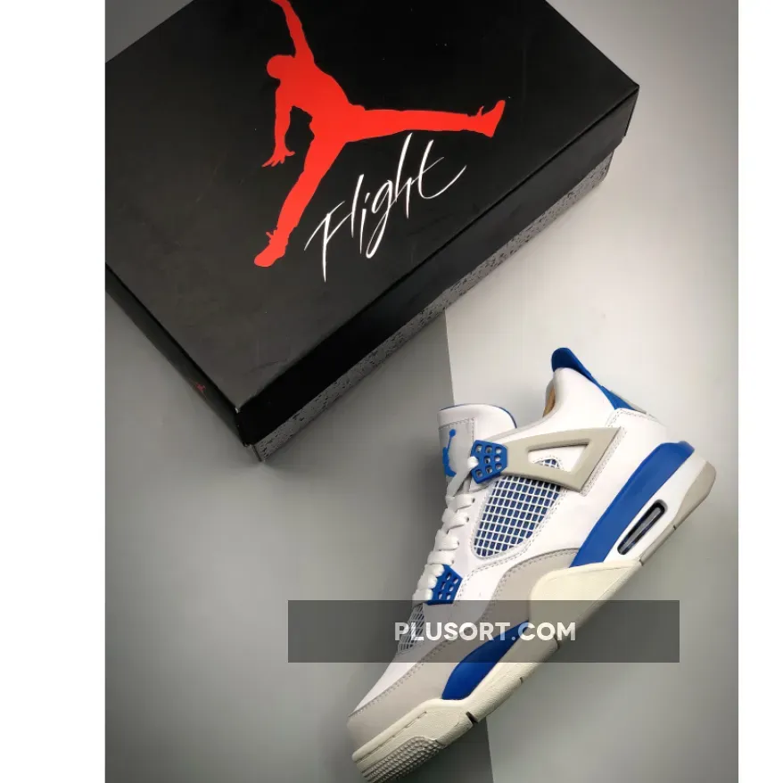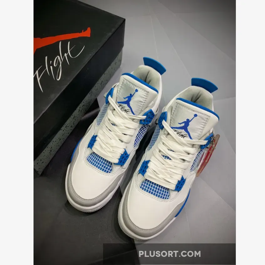 “? Just got my Air Jordan Retro 4 and I’m blown away by the quality! The white leather upper is so soft and premium, while the Military Blue accents add a nice touch of flair. Comfortable out of the box too ? Highly recommend for any sneakerhead!”
