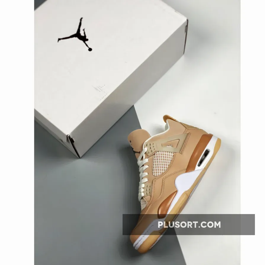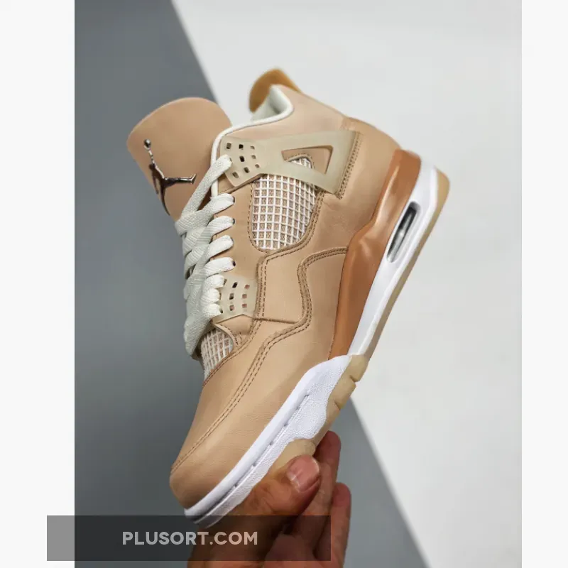 Michael Jordan’s fourth signature basketball kicks have received a significant level of attention as of late. The AJ4 has surfaced in covetable colourways like the University Blue and Taupe Haze renditions, but the all-new Air Jordan 4 Shimmer is definitely the grand winner for many fans. We’ve got a closer look at this new offering from Nike and Jordan Brand right here, so read on as we tell you all about its standout details.Right away, the colour palette of this AJ4 shimmer gives off a similar look to Virgil Abloh’s Off-White x Air Jordan 4 “Sail” edition, meaning that the hype around these is off the roof.From heel to toe, The Air Jordan IV’s signature components remain while the panels arrive in luscious suede and leather coatings and neutral tones. Also, use our Air Jordan 4 size guide to know how they fit.