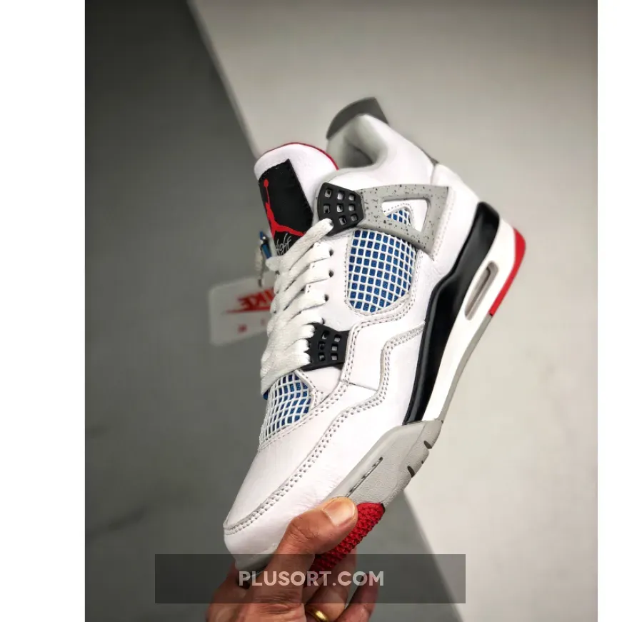 Released in November 2019, the Air Jordan 4 Retro SE ‘What The 4’ takes the original four colorways of the Air Jordan 4 and combines them in a ‘What The’ format that has been seen on several Nike silhouettes. This original color palette is realized on the entire shoe, with the beloved Varsity Red, Cement Grey and Military Blue that Jordan 4 fans recognize and love. The discordant aesthetic works across the leather uppers, signature lacing wings and Jumpman logos on the tongue and heel to create something familiar yet new.