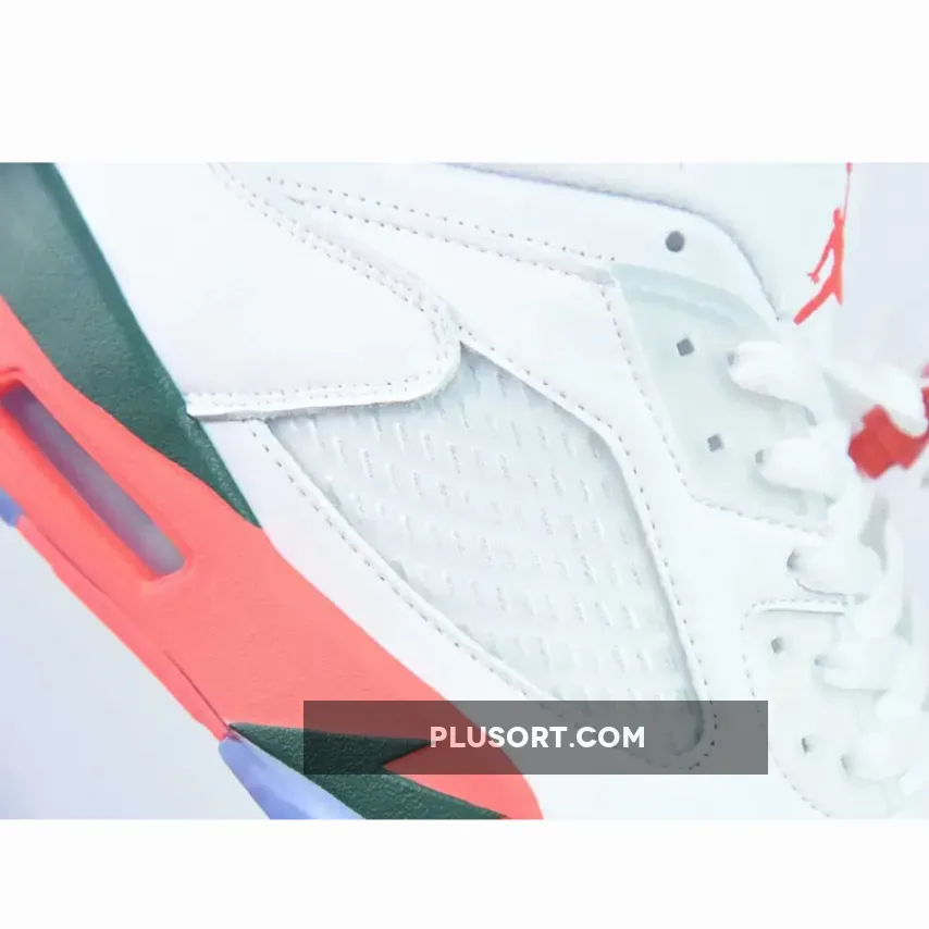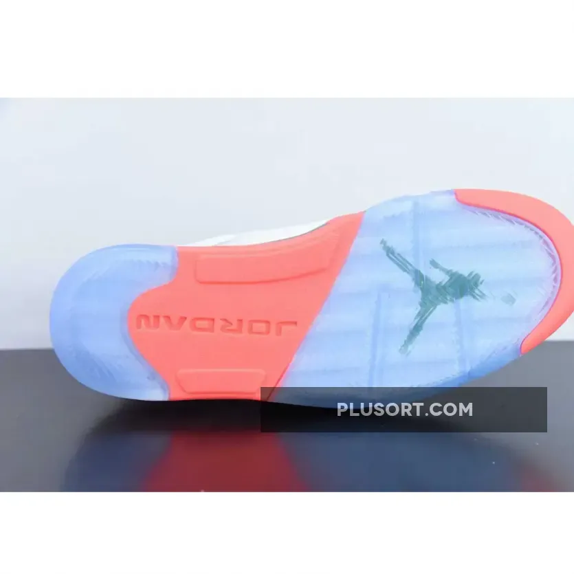 the AJ 5 is to have a color palette featuring football gray, dazzling orange, and pine green. The “Football Grey” forms the backdrop of the shoe, a bluish tone that gives a unique twist to the classic silhouette. The standard Air Jordan 5’s enduring features, such as the plastic fence on the tongue as well as midfoot, continue to be evident. Contrasting brilliant orange and pine green will appear on the midsole, liner and piping, as well as the Jumpman logo and lace toggle. The combination gives an ostensible nod to the Miami Hurricanes, adding a sporty flair that will likely resonate with young athletes and fans alike. Rounding out the final details are the football grey laces and translucent outsole.