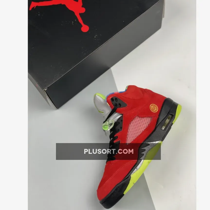 The Jordan 5 What The is the latest Air Jordan set to drop from Nike and Jordan Brand, and we’ve got a first look right here. The legendary Jordan 5 dropped for the first time in 1990 as Michael Jordan’s fifth signature Nike Air sneaker, and was designed by the one and only Tinker Hatfield. While Air Jordans have always been popular amongst basketball fans, the popularity of these specific basketball shoes has increased massively as of late due to high-end collaborations with those such as Virgil Abloh and of course the highly-coveted ESPN documentary The Last Dance (documenting Michael Jordan and the Chicago Bulls). The colorway seen here is a crazy-looking mash-up of some of the most iconic colourways of the Jordan 5 of all time, launching to celebrate the 30th anniversary of the pair, and we’ve got your best look yet. Vibrant shades of yellow, red, purple, green and many other colours adorn the luxury suede uppers, while Jumpman branding at the tongue and various other motifs are carefully placed for a premium look. The Nike Air Jordan Jumpman logo once again adorns the heel, where panels from the iconic “Purple Grape” AJV can be found. Of course, a visible Nike Air unit is present under the heel, making sure that these are mega comfortable both on and off the basketball courts. The Nike Air Jordan 5 What The has finally been given a release date for later on this year, when it’s set to drop at select retailer sites across the internet and the Nike SNKRS app. There’s no doubting that this retro release is going to be a hyped one, so if you’re looking to cop these future classic Air Jordan’s make sure to stay locked in right here at Our Store Supplier, as we’ll update this page with direct links to retailer sites and the retail price as soon as it’s announced.