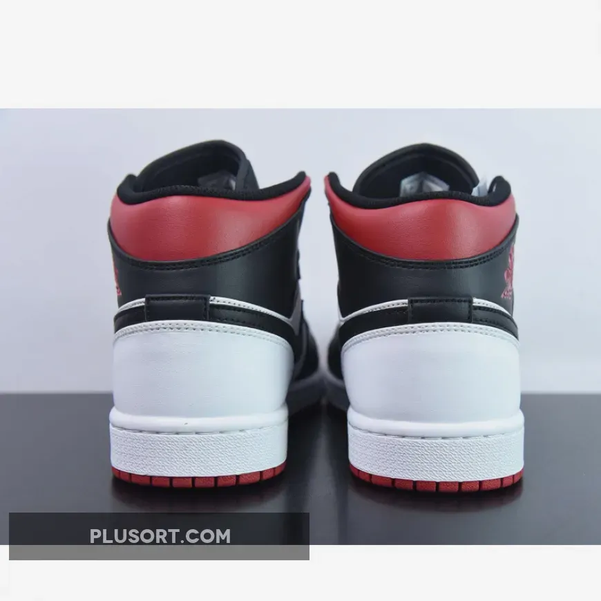 This Air Jordan 1 Mid is introduced in another clean colorway as this rendition boasts the favorable color scheme of white, black, and red tones.