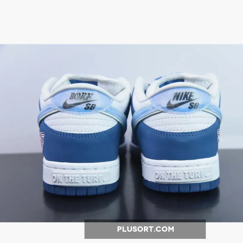 The LA-based streetwear label upgrades the classic SB model with a crisp white and blue color scheme.This offering of the Born x Raised x Nike SB Dunk Low features a White premium leather upper and lining with Blue nubuck overlays, mesh tongues atop a White midsole and Blue rubber outsole.. Highlighting the shoes, we have Born x Raised’s motto, ‘One Block At A Time,’ embroidered on the forefoot and placed on the tongue labels. Next, “In Loving Memory” is heat pressed onto the laces with branded lace tips, 3D text on the midsole’s heel with co-branded tongue labels, heels, insole, and outsole completes the design. Co-branding lands on the tongue labels, heels, insoles, and outsole, while holographic Swooshes and heel tabs finish the look