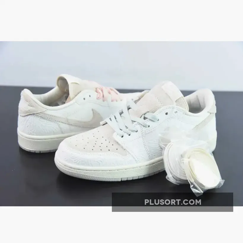 The base of the upper is constructed in a creamy white leather with an embossed floral pattern covering the entirety. The overlays are made of a shaggy suede in ‘Sail’, which includes the toe panel, Swoosh, tongue and a small section on the heel. “Give Them Flowers” labels decorate the interior, while the debossed Jordan Wings logo adorns the rear. The yellowish semi-translucent outsole features more floral details, complementing the graphics-heavy sockliners with blue floral details and a special-edition logo.The pair also comes with an additional set of laces.