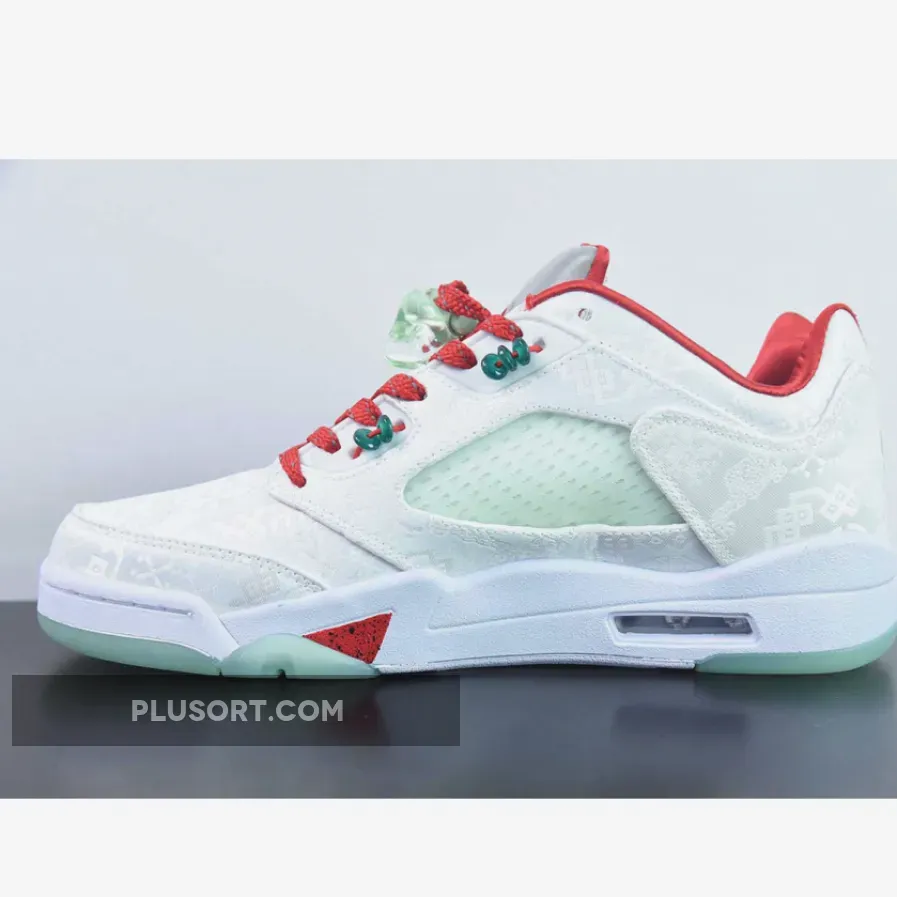 The jade-colored accents, however, remain, dressing the lace unit and sole alongside a few auspicious hits of red. Limited to 250, every pair of the CLOT x Air Jordan 5 Low “White Silk” will not only be individually numbered but also packed in a luxurious, hardwood box adorned with golden brass hardware and laser-etched co-branding.
