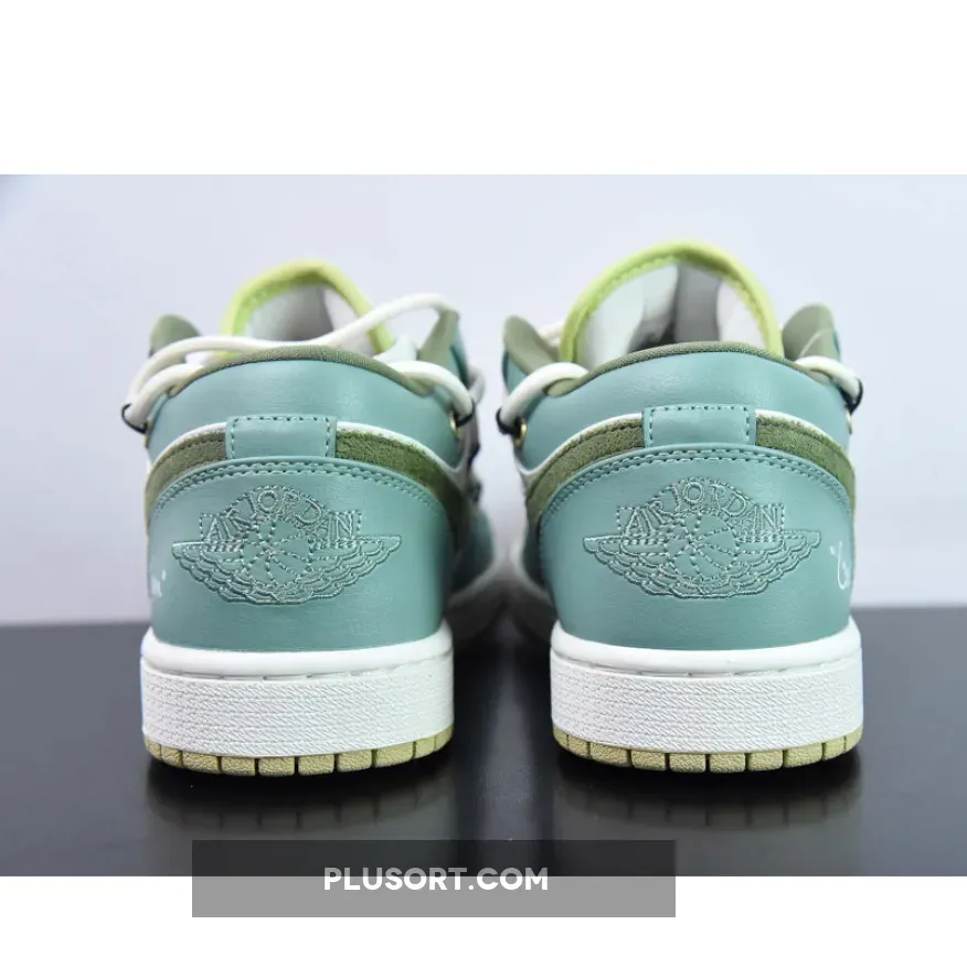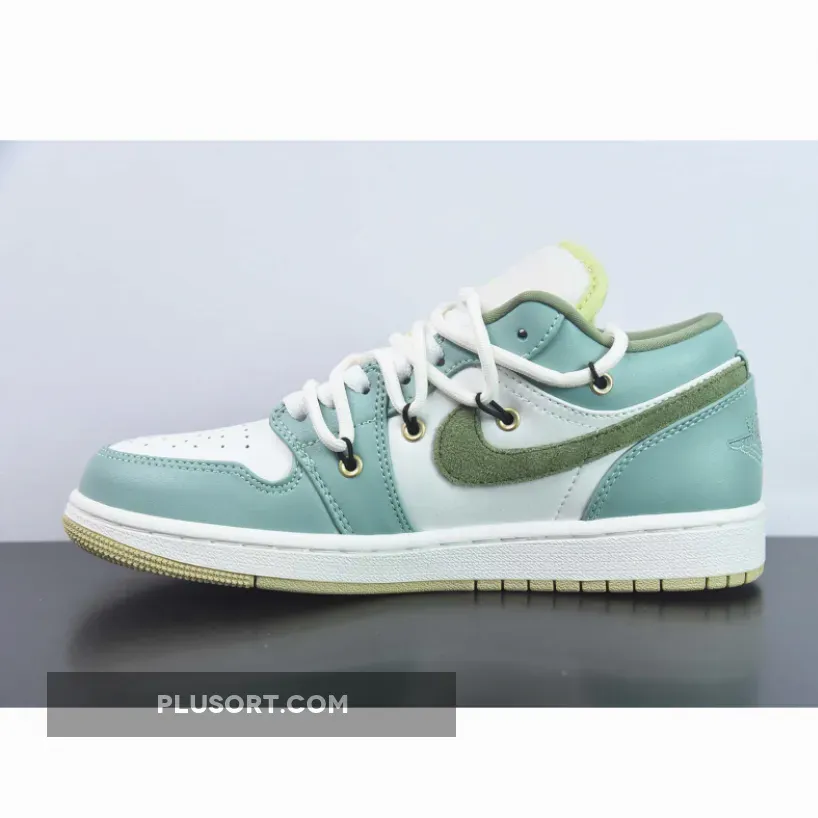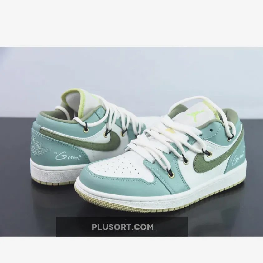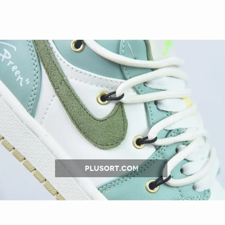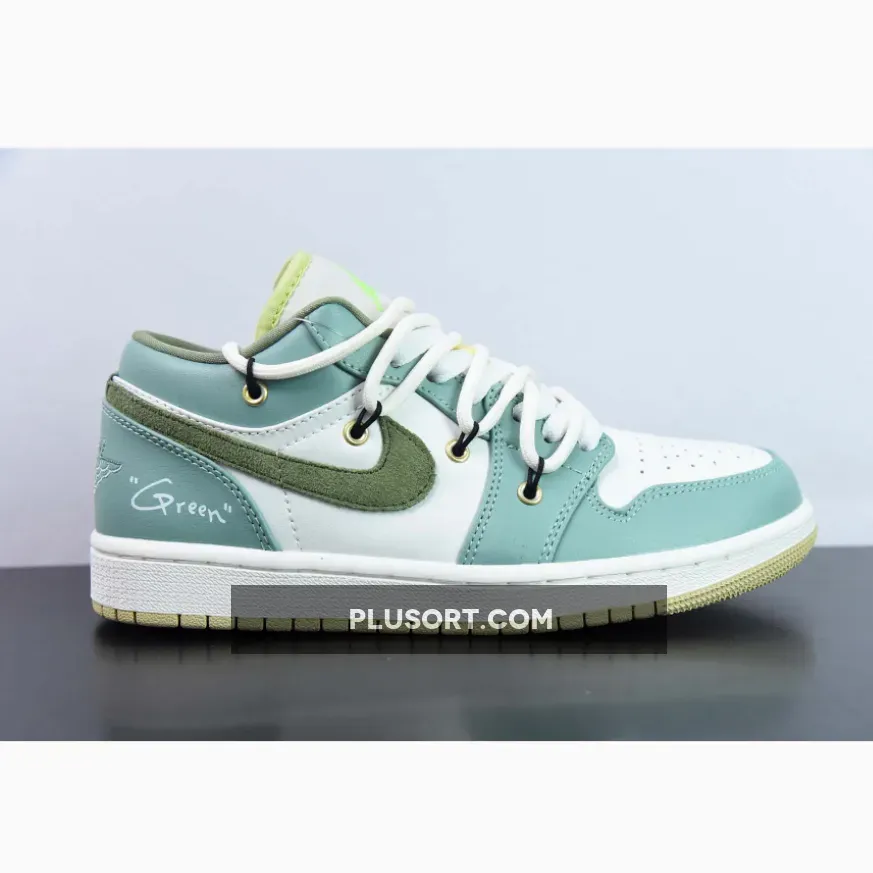 Experience the comfort of Custom Air Jordan 1 Low Sail White Oil Green from PLUSORT.COM.