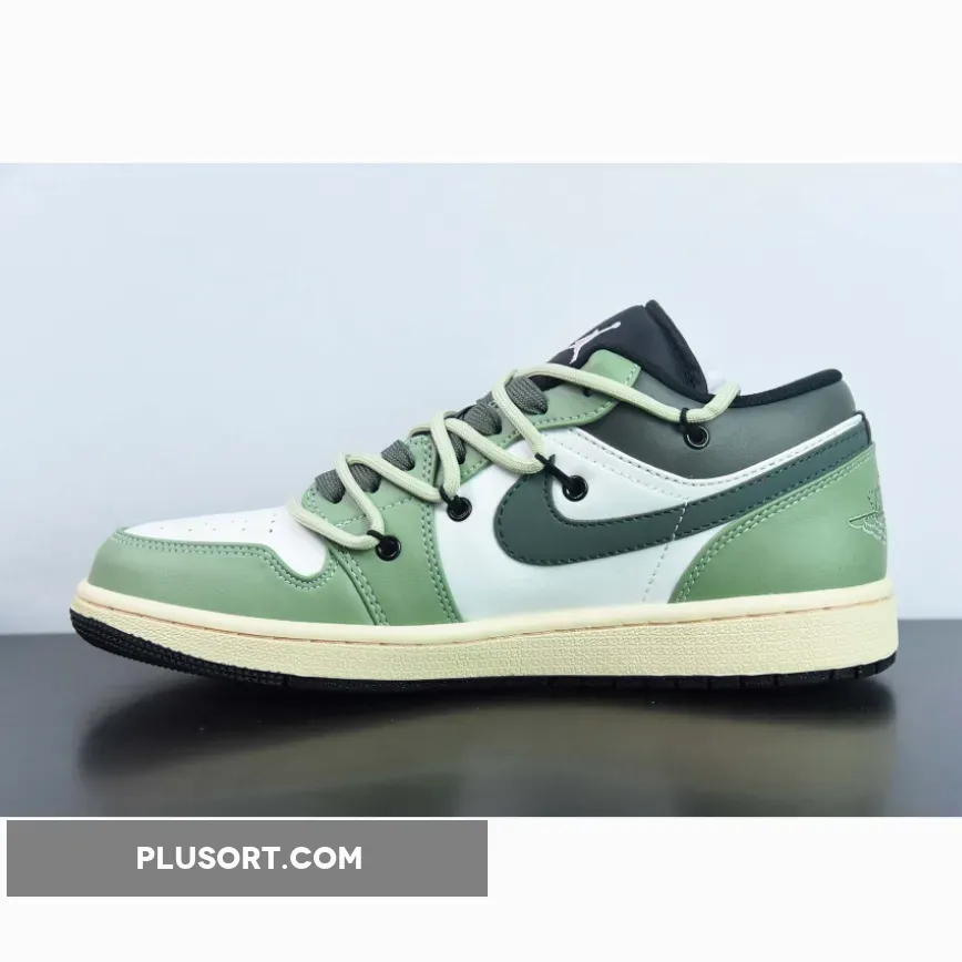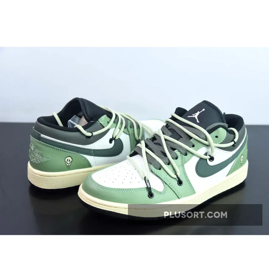 Get ready for any adventure with Custom Air Jordan 1 Low White Black Green from PLUSORT.COM.