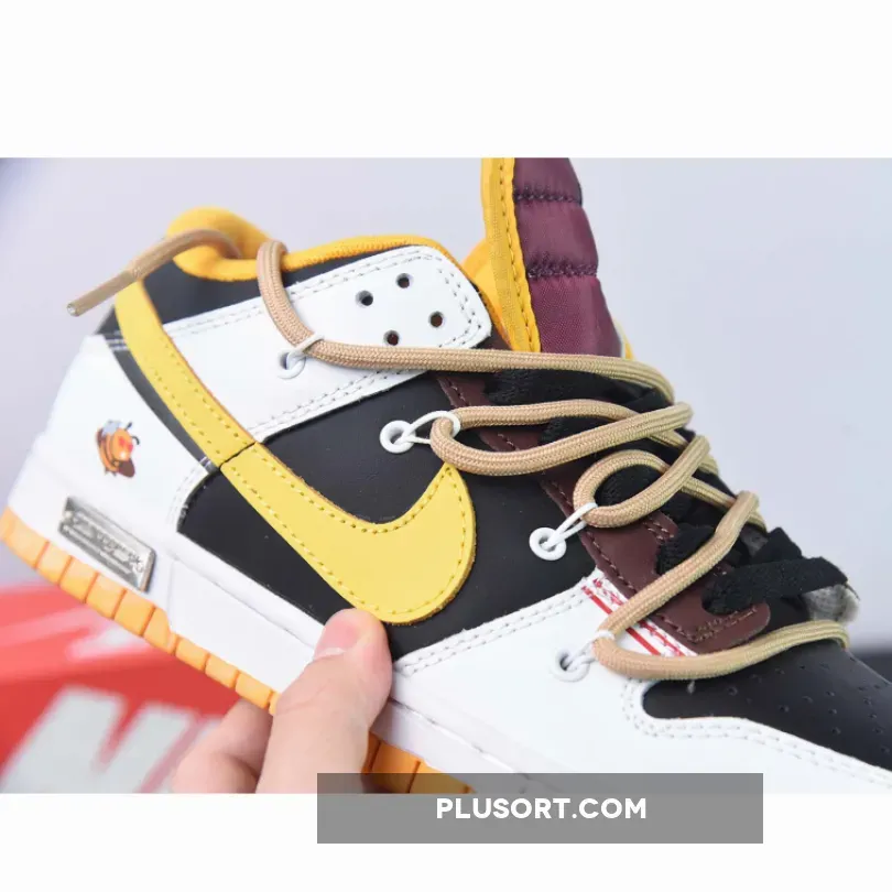 Get ready for any adventure with Custom Nike SB Dunk Low ‘Bee’ White Balack Yellow from PLUSORT.COM.
