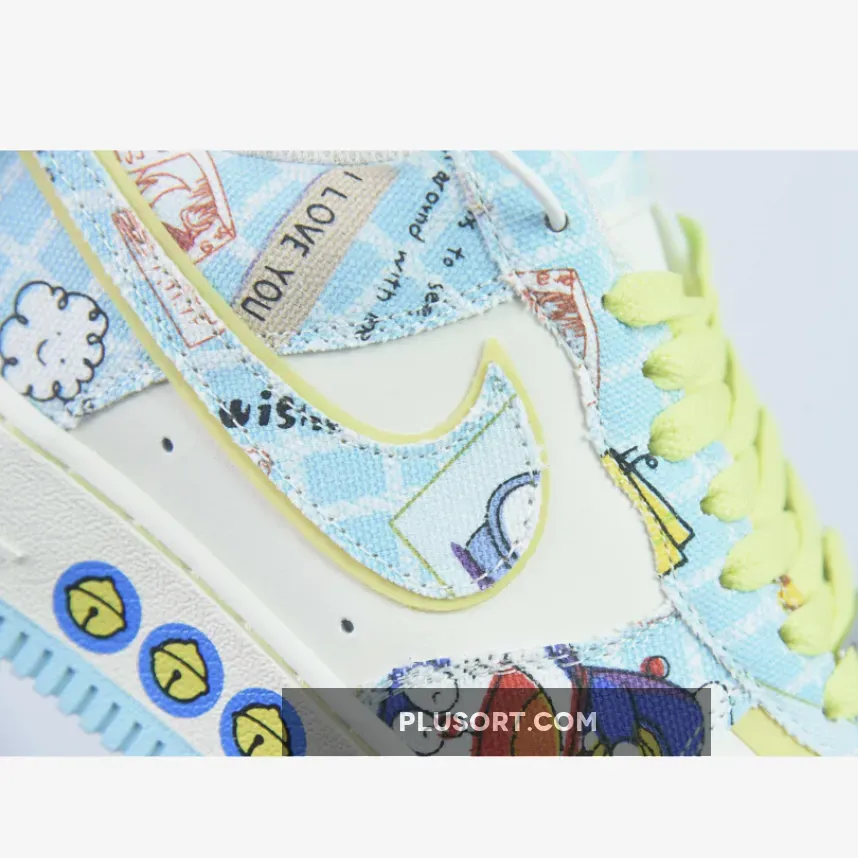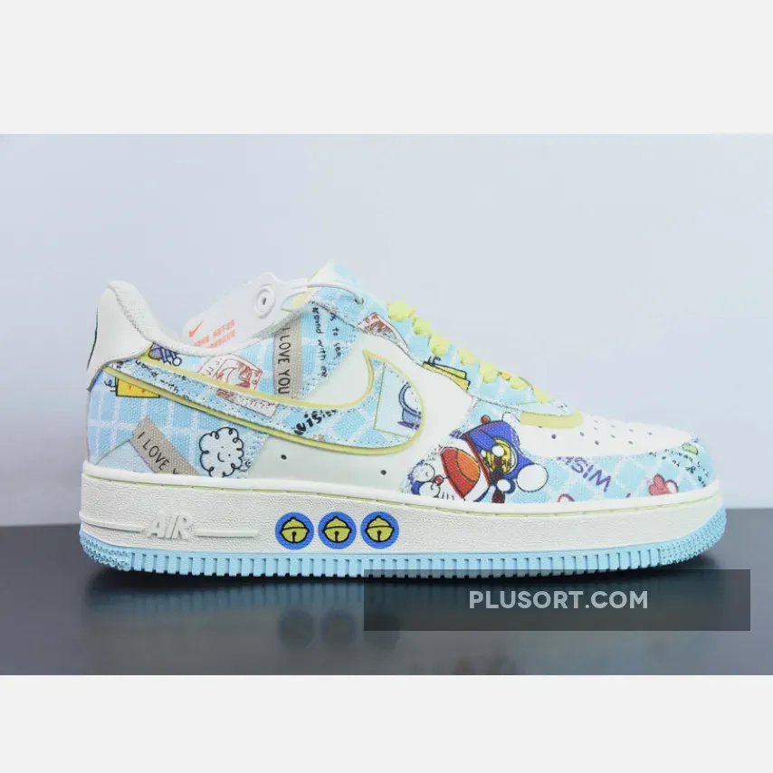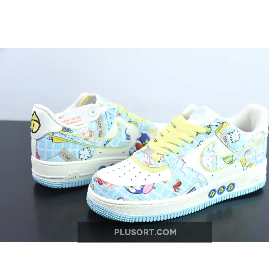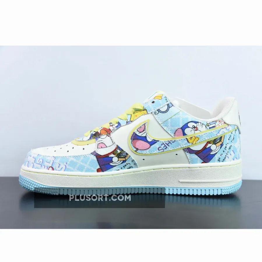 Discover the best deals on Doraemon x Nike Air Force 1 Low Custom White Blue Yellow at PLUSORT.COM.