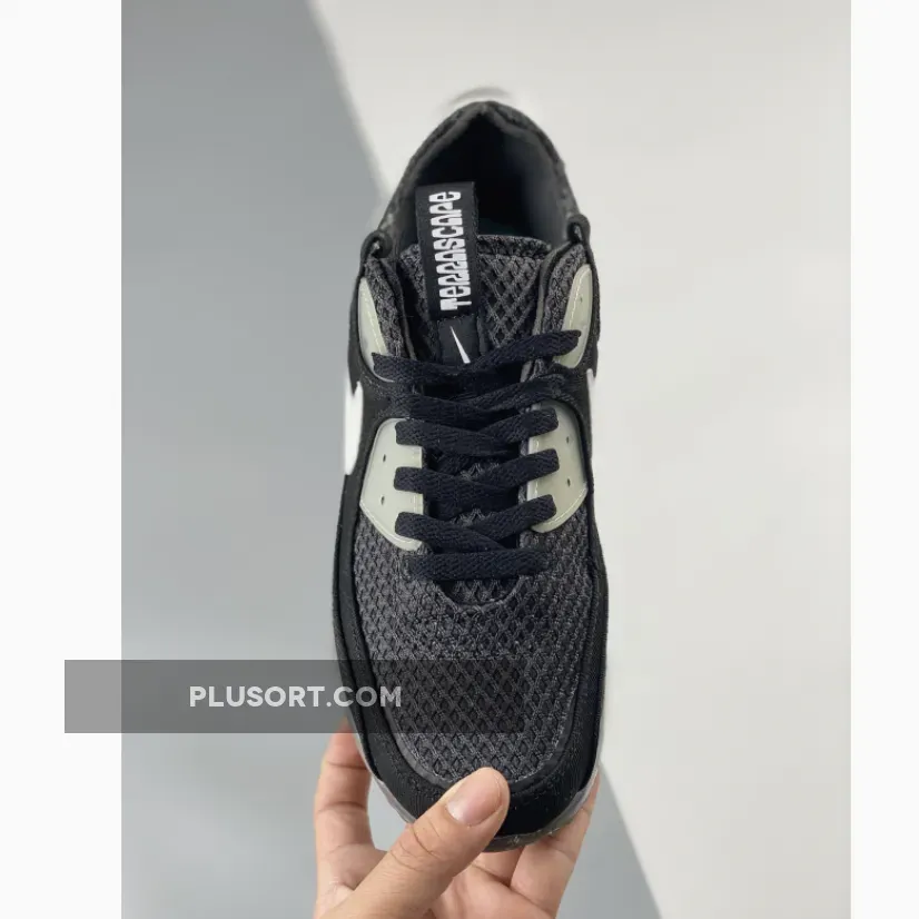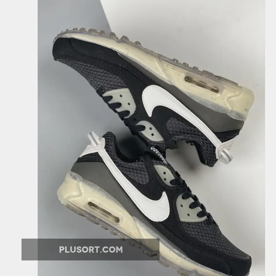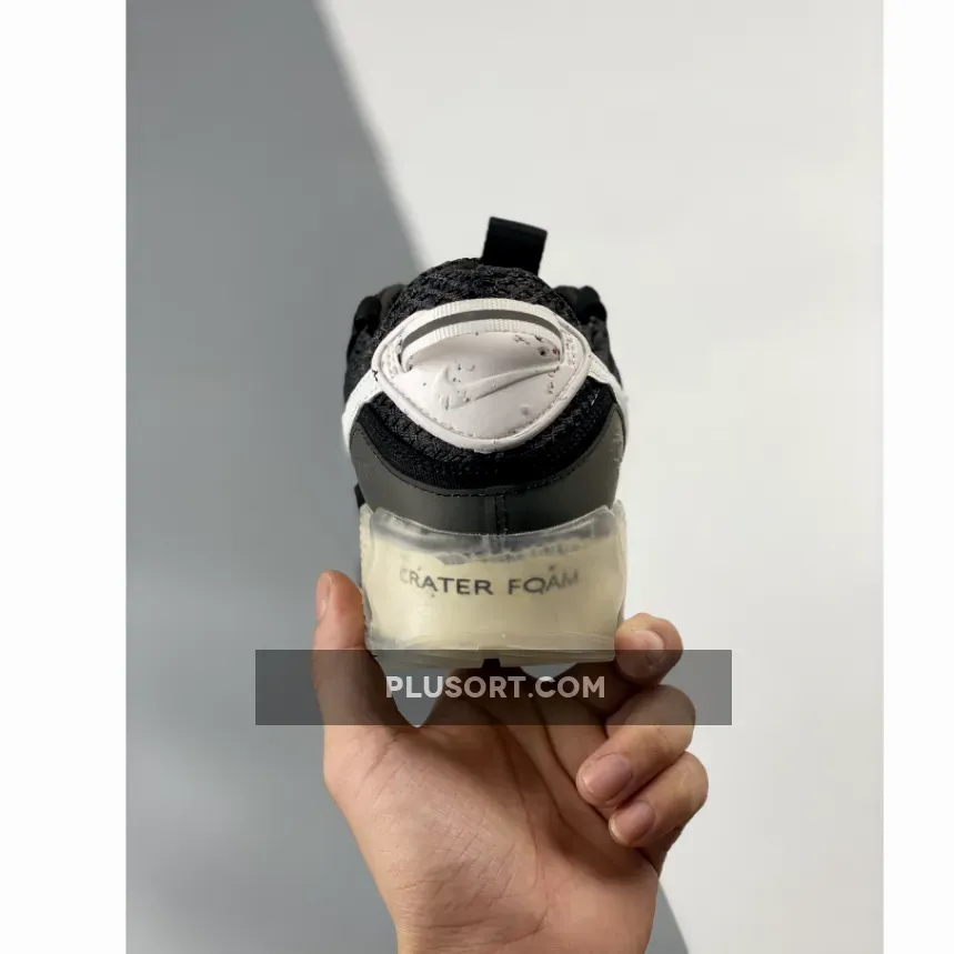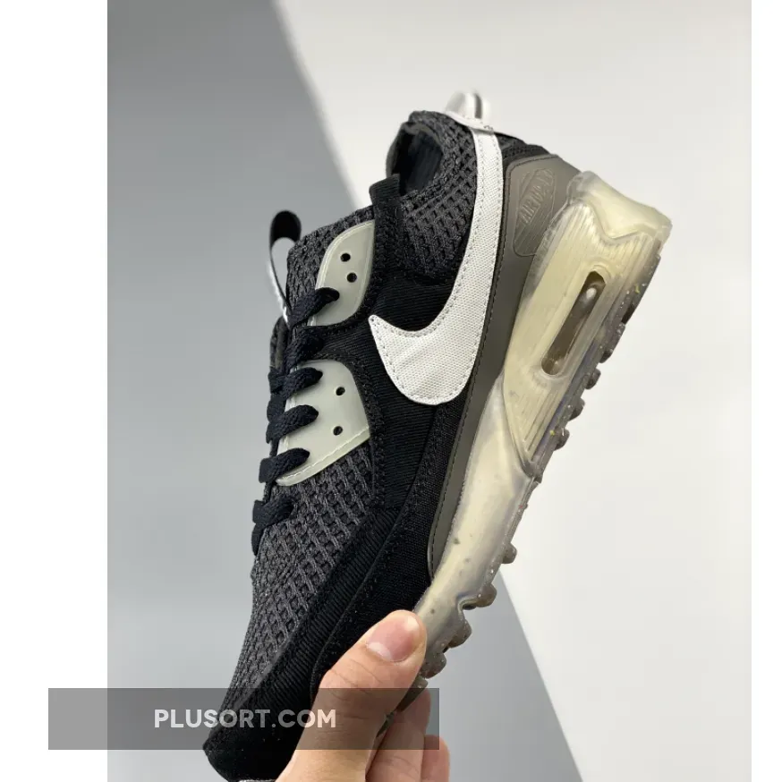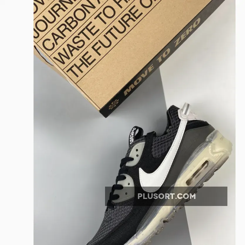 The Nike Air Max 90 Terrascape Crater Foam Black White incorporates recycled materials into the construction of the shoe.