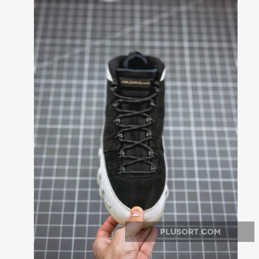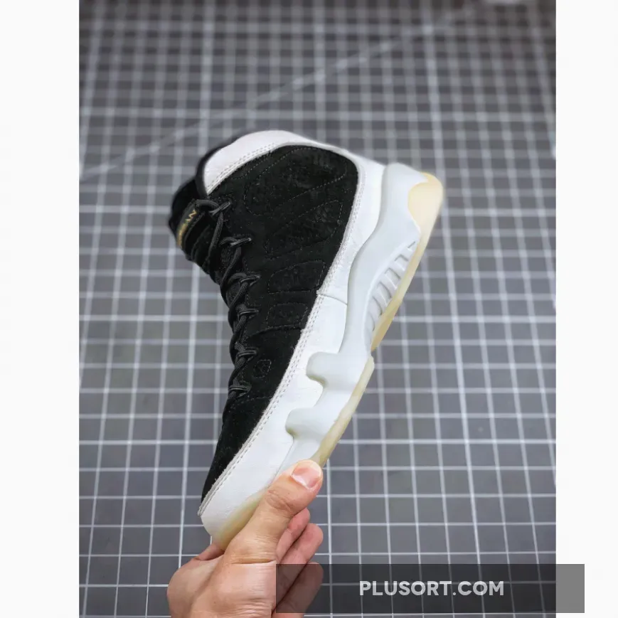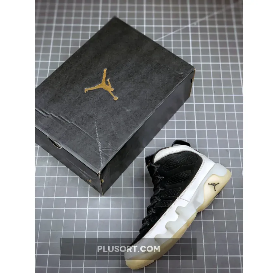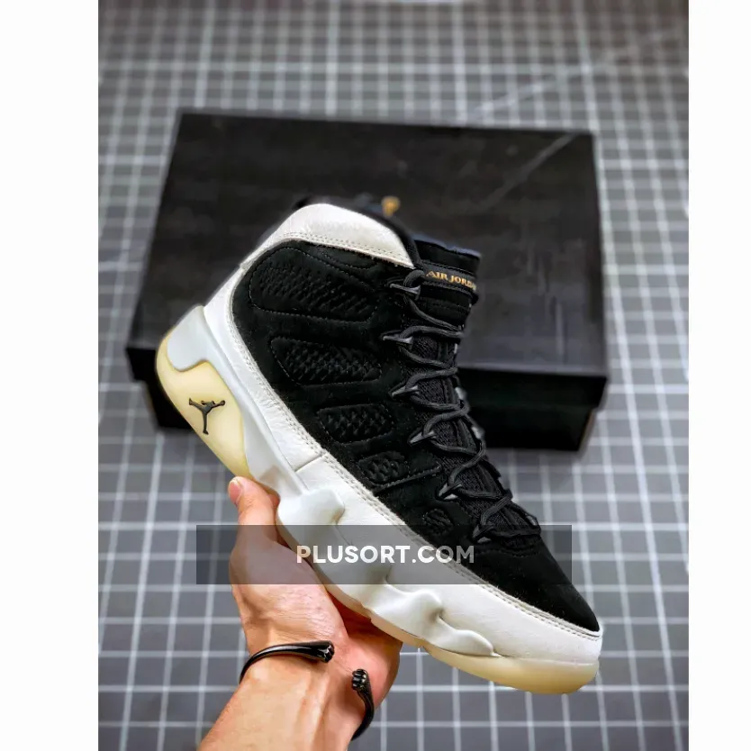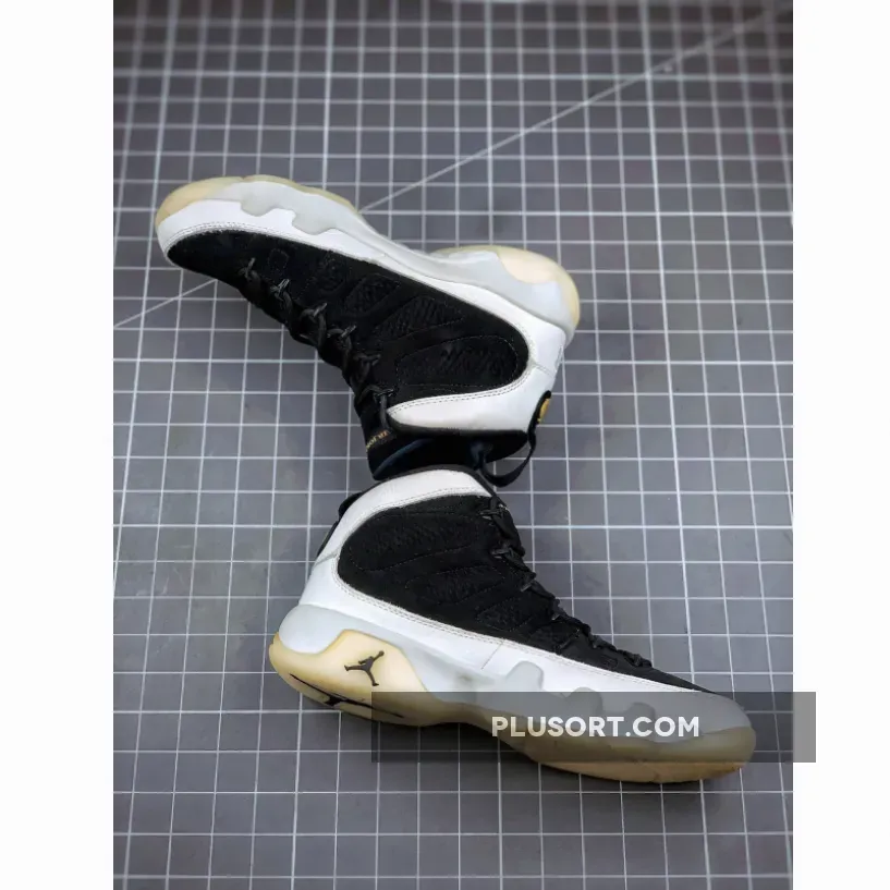 Dressed in a Black, Summit White and Metallic Gold color scheme. This Air Jordan 9 is highlighted with its translucent outsoles and Los Angeles map-inspired graphic insoles.