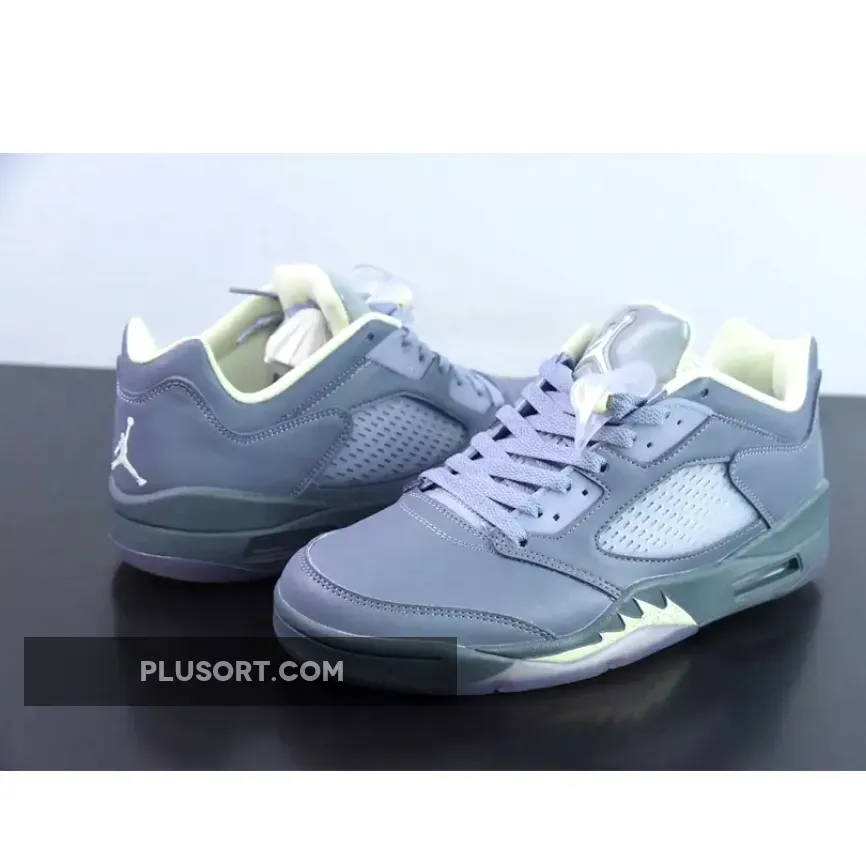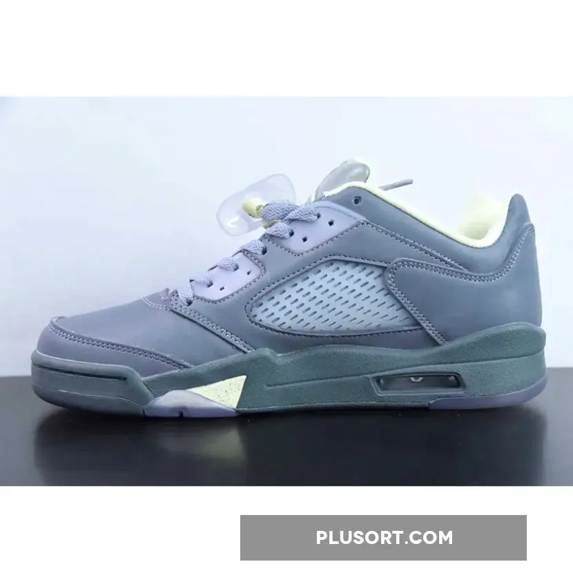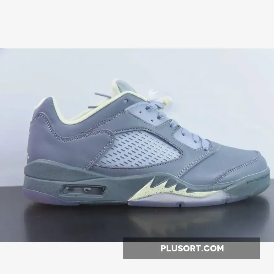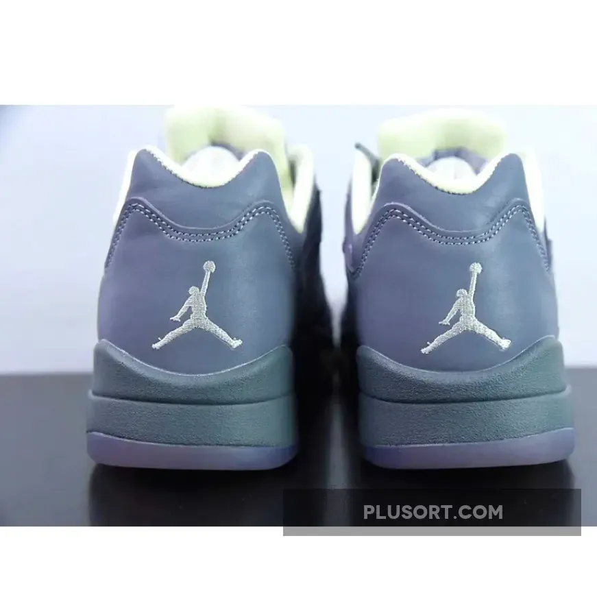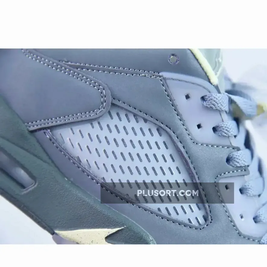 This offering of the Air Jordan 5 Low features a 3M reflective upper in an Indigo hue with Alabaster contrasting accents.