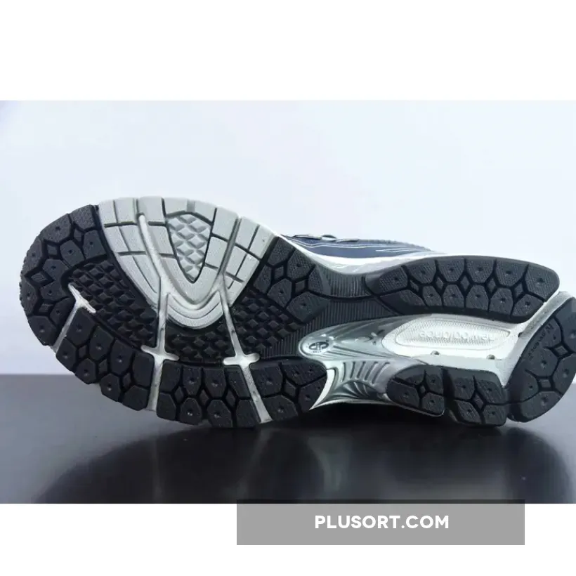 the upper which is joined by Silver and Grey accents on the leather overlays and branding throughout. Tonal leather trimmings decorate the toe boxes medials with white detailing, while reflective N-LOCK insignia adorns the latter alongside grey lace eyelets. Metallic plastic guards protect the heels, accompanied by model-specific branding placed above.