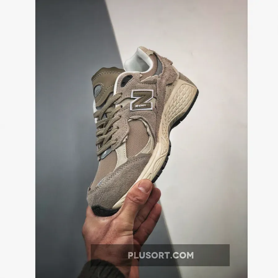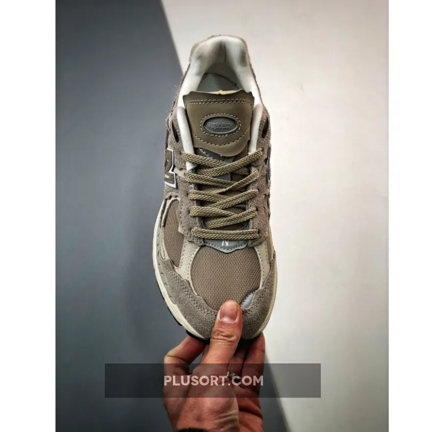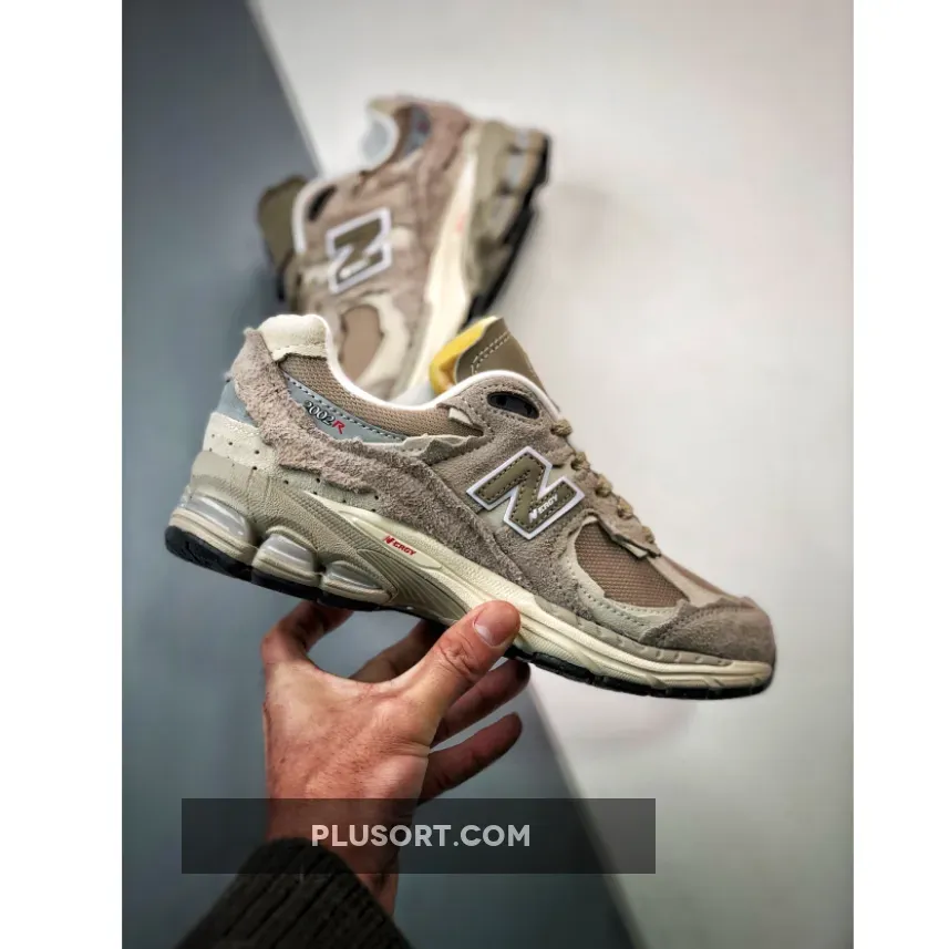 Solid colour scheme and chunky silhouette make these New Balance 2002R Protection Pack Khaki Grey shoes a head-turner. Good mix of materials and comfy. #NewBalance #Sneakers #ProtectionPack