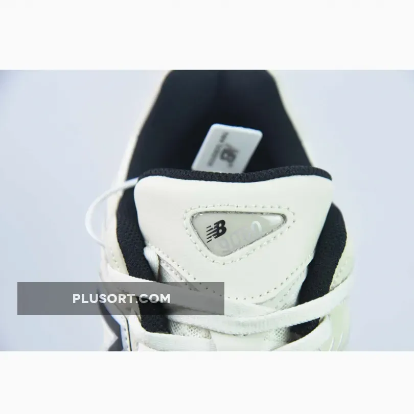 This colourway features a sail white leather upper and a mesh base with honeycomb patterns underneath. Black accents adorn the N logo on the lateral panel and the interior lining. The heel counter and rubber portions on the midsole come in grey.