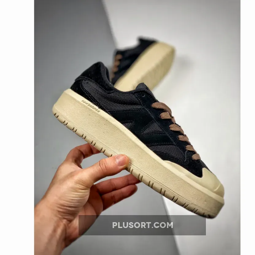 The New Balance CT300-inspired hardcourt silhouette, the CT302, has just rolled out a dramatic-looking drop. Take a closer look at the New Balance CT302 Black Calm Taupe. This NB CT302 has an all-black upper, from the mesh base to the suede overlays, including the outsized “N” logo on both sides of the shoe. The titular Calm Taupe laces create a powerful contrast against the dark background. The lighter-hued rubber toe wrap and the Calm Taupe branding on the black exposed-foam tongue also continue the contrasted-colour look.