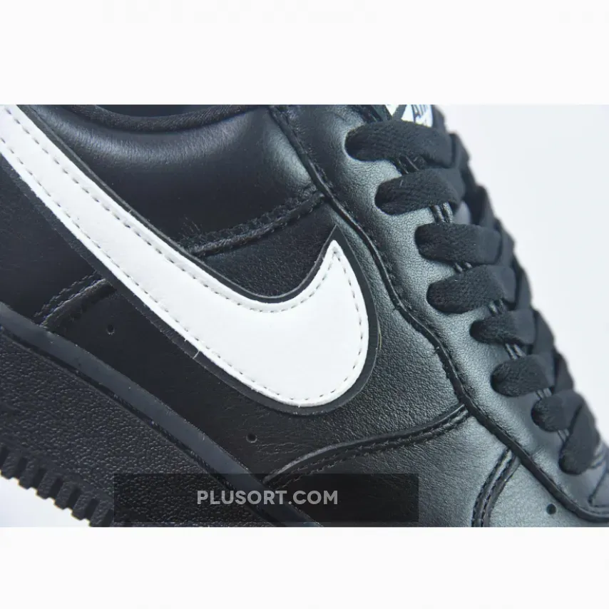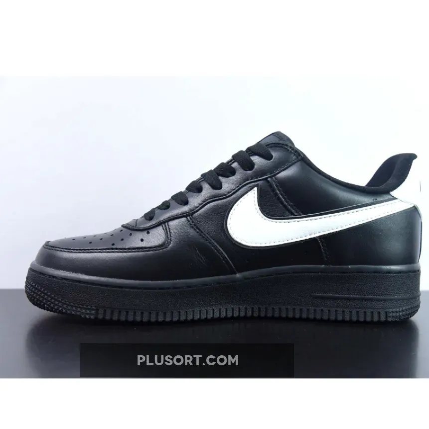 the Air Force 1 Black White is decked out completely in smooth premium leather from heel to toe and painted in a stealthy all black colour scheme. Along the lateral and medial panels, a giant white Swoosh shoots across providing a striking pop of contrast.