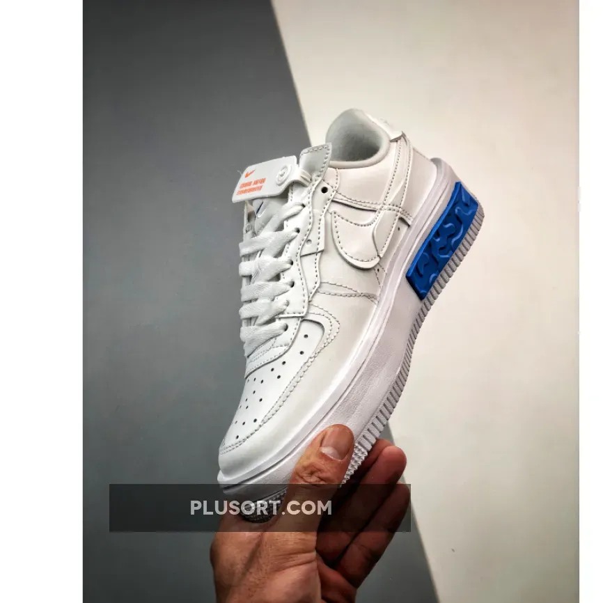 The rave scene-inspired Nike Air Force 1 Fontanka has just dropped an immaculate all-white iteration with a pop of blue. Introducing the Nike Air Force 1 Fontanka White University Blue. This AF1 Fontanka is mostly dressed in White and Summit White with a mix of smooth leather and suede. Sporting a layered aesthetic, you’ll find doubled eyelets and double stitching on the shoe. The doubled tongue shows off a University Blue Nike logo and the three Fontanka Swooshes in red, blue and green.