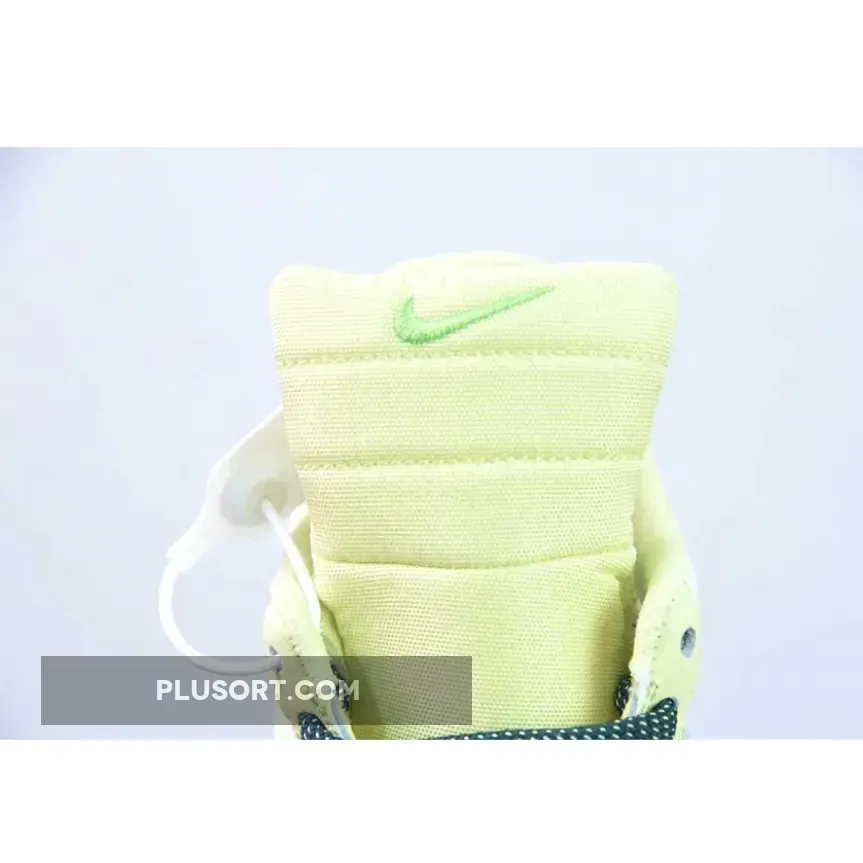 The palette on the “Big Tongue” Air Force 1 Low is as refreshing as a summer afternoon. Anchored by a clean white base, it lets its colors do the talking—quite literally. The rubber outsole and thick laces are awash in a refreshing green, setting the stage for the other standout hues. Then comes the lemon—a color that punctuates the elongated tongue, eyestay, heel overlays, and notably, the protruding jewel Swoosh which graces the profile side. What’s more, a lasting swatch of neon is painted along the heel’s embroidered logo while the laces’ dark teal tint returns to treat the tread in conclusion.