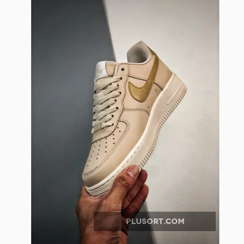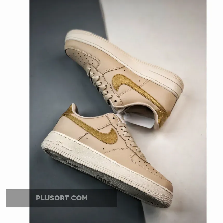 gold nike check #air force 1 gold swoosh #nike air force 1 gold swoosh #golden air force 1 #golden air forces #beige nikes #nikes with gold