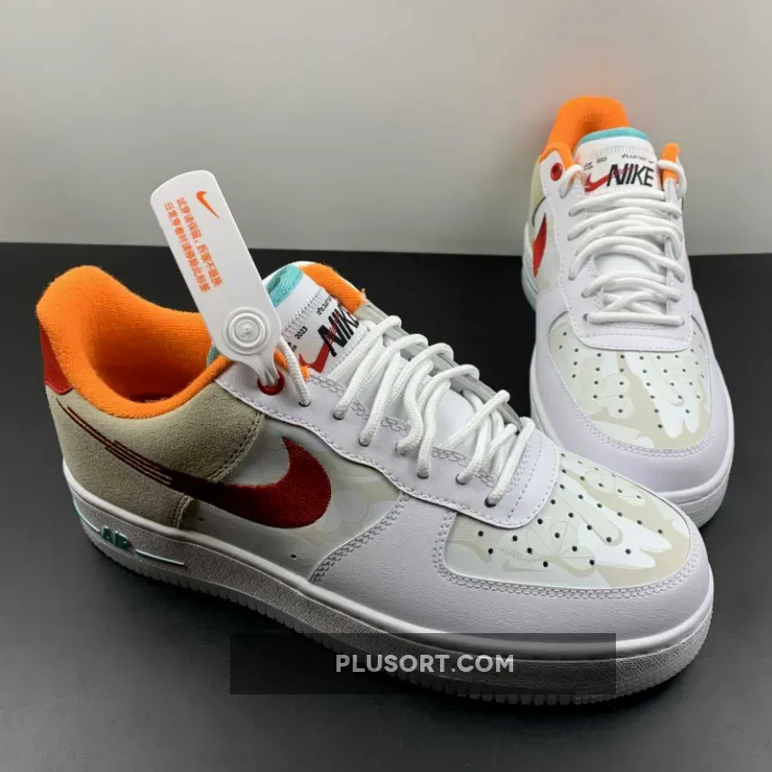 Dressed in a Summit White, University Red, White, Washed Teal, Sanddrift, and Safety Orange color scheme. This offering of the Nike Air Force 1 Low comes constructed in a mix of leather and suede materials with embroidered Swooshes on the sides. Other notable details includes hidden graphics on the toe box and side panels with special “Just Do It” branded tongues and insoles. A White midsole atop a milky marble-like translucent outsole completes the design.
