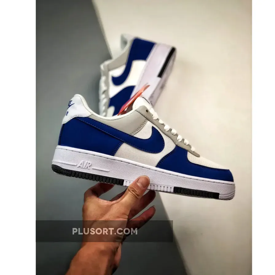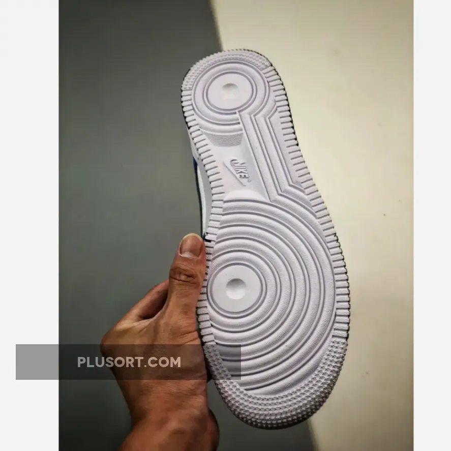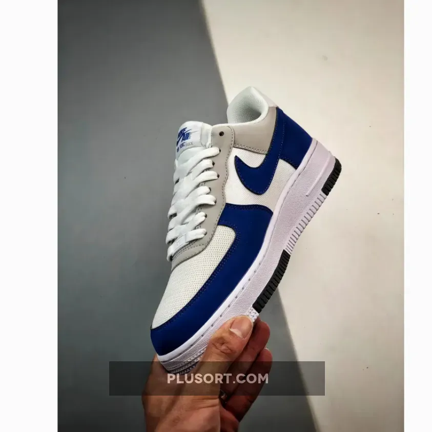 The Nike Air Force 1 Low Timeless Game Royal sneakers riff on the Air Max 1 OG. Breathable white mesh serves as base for the upper and is edged with smooth leather at the eye stays, collar and heel overlay. Deep royal blue, also on leather, enters via the mudguard, medial and lateral side panelling as well as the iconic Swoosh motif. The lace-up fastening leads to a logo-patched tongue which picks up the striking blue hue once again. A slightly darker thread is used for the branded embroidery on the heel.